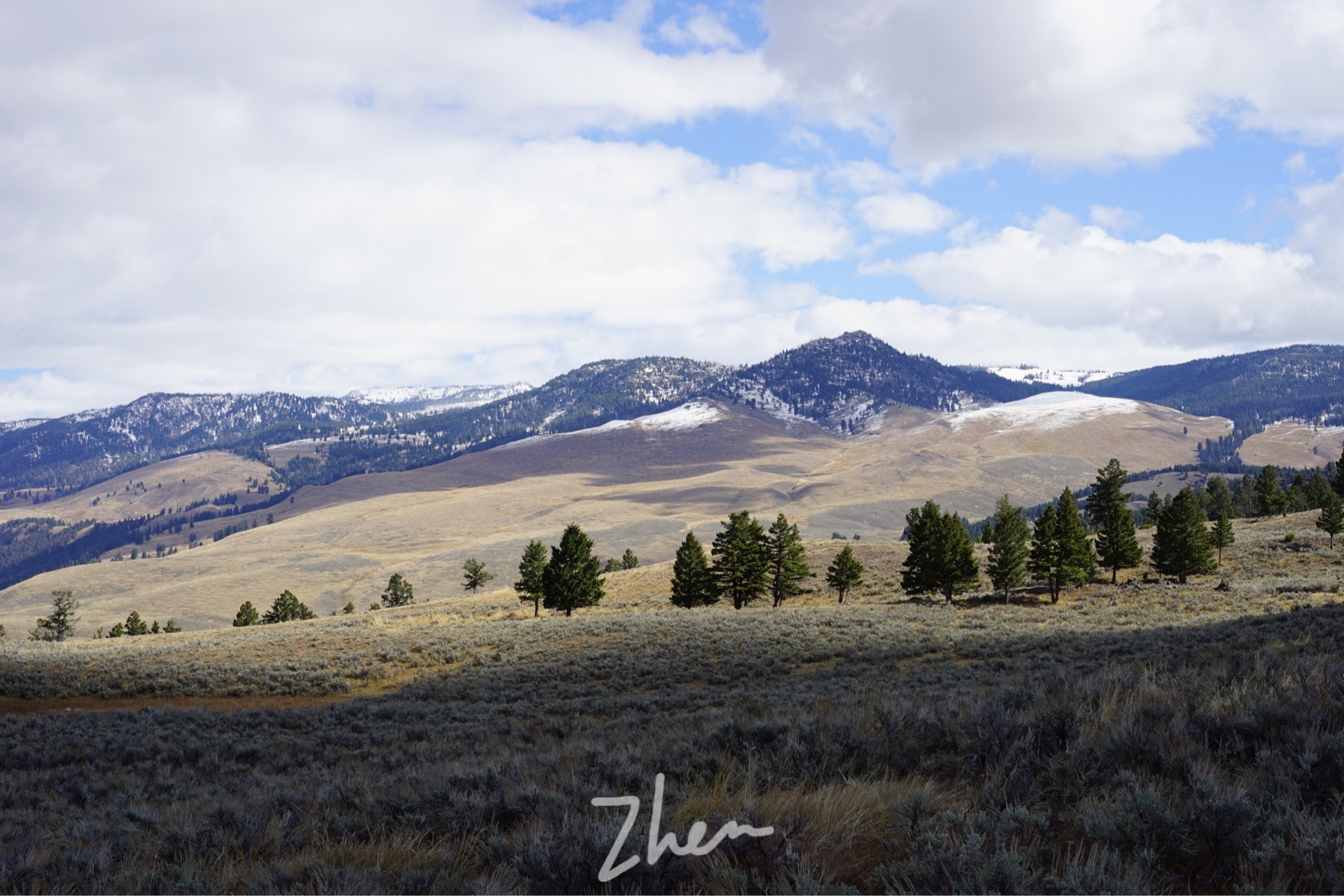从盐湖城到大提顿大概 5-5.5 小时车程,沿路的风景都是金黄或绿色的草地,雪山背景,偶尔有成群的牛羊,美到全程无睡点。