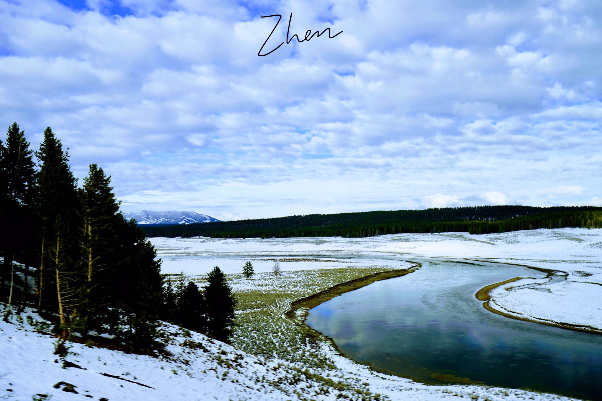 中午后,大雾散去后的 Oxbow Bend 风景是这样的