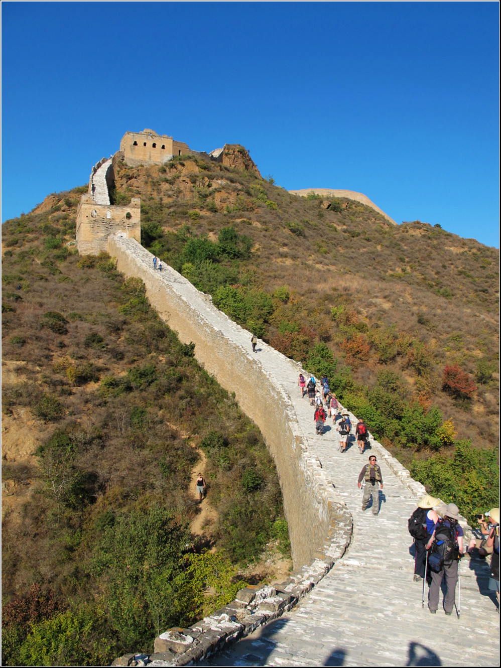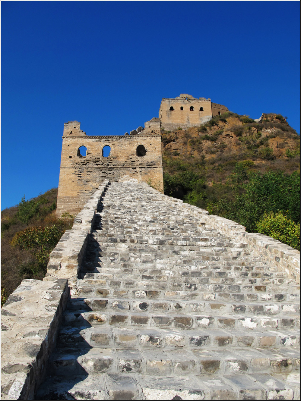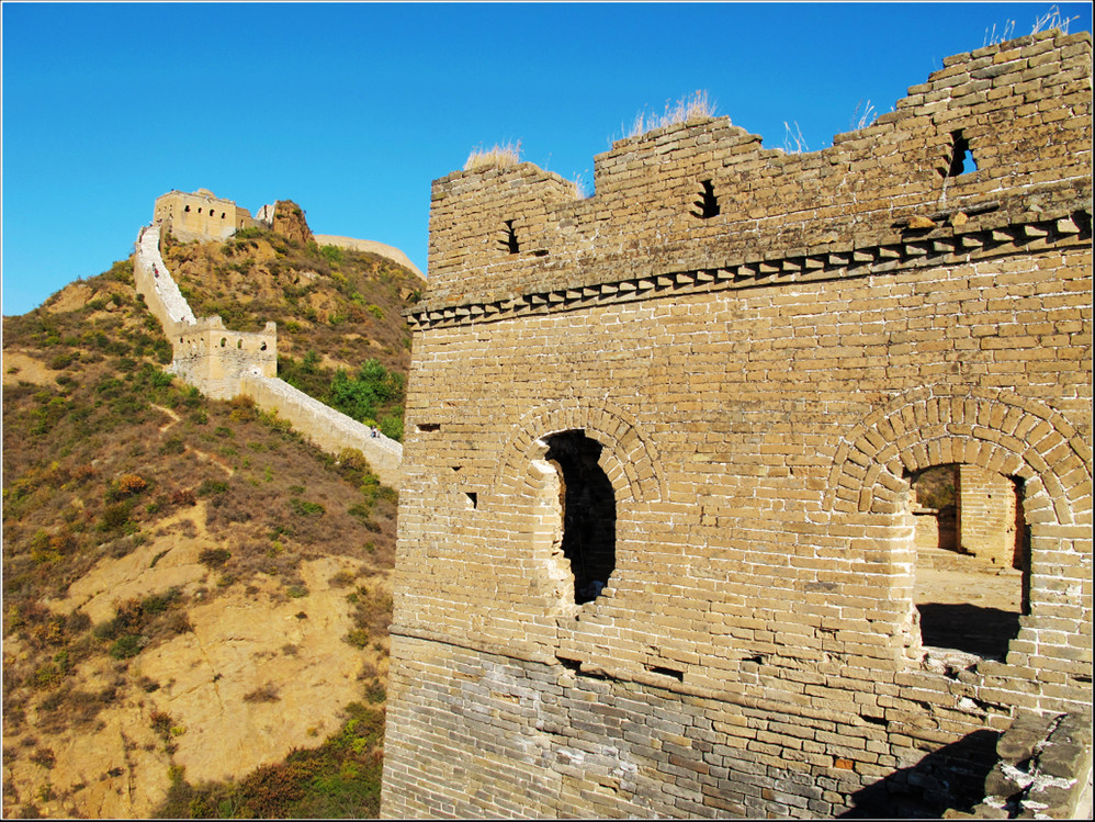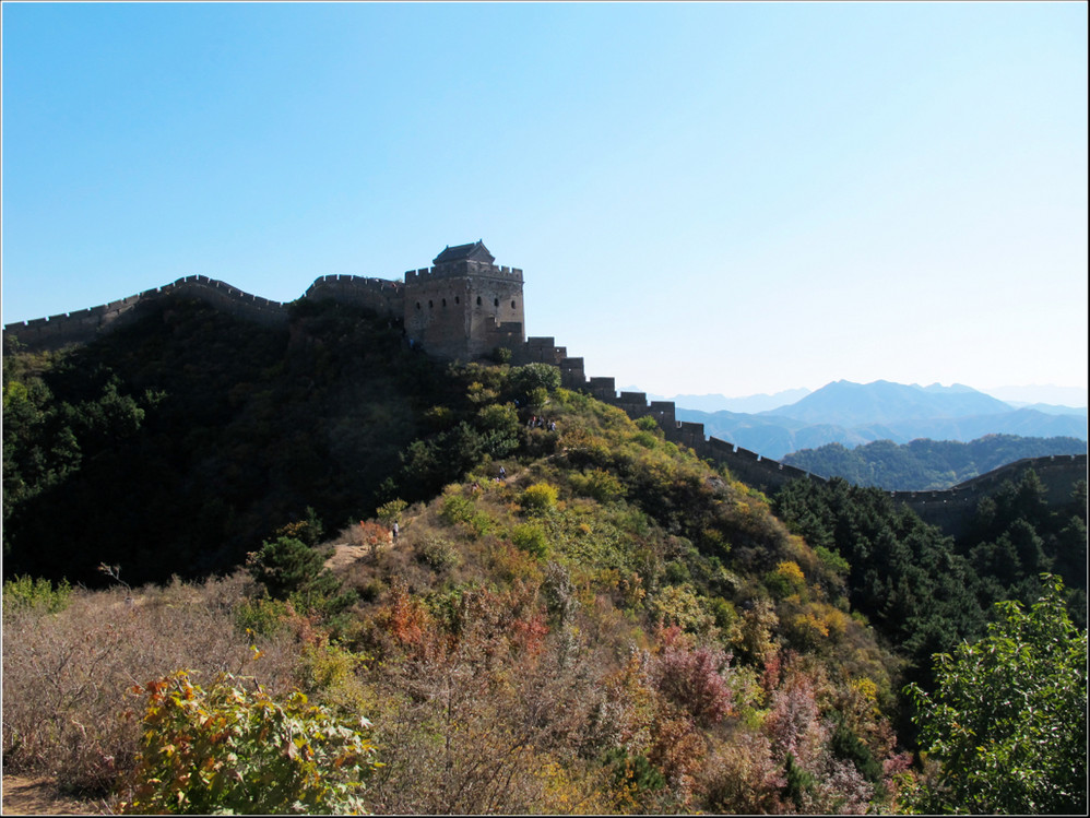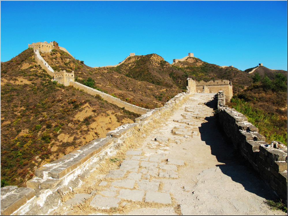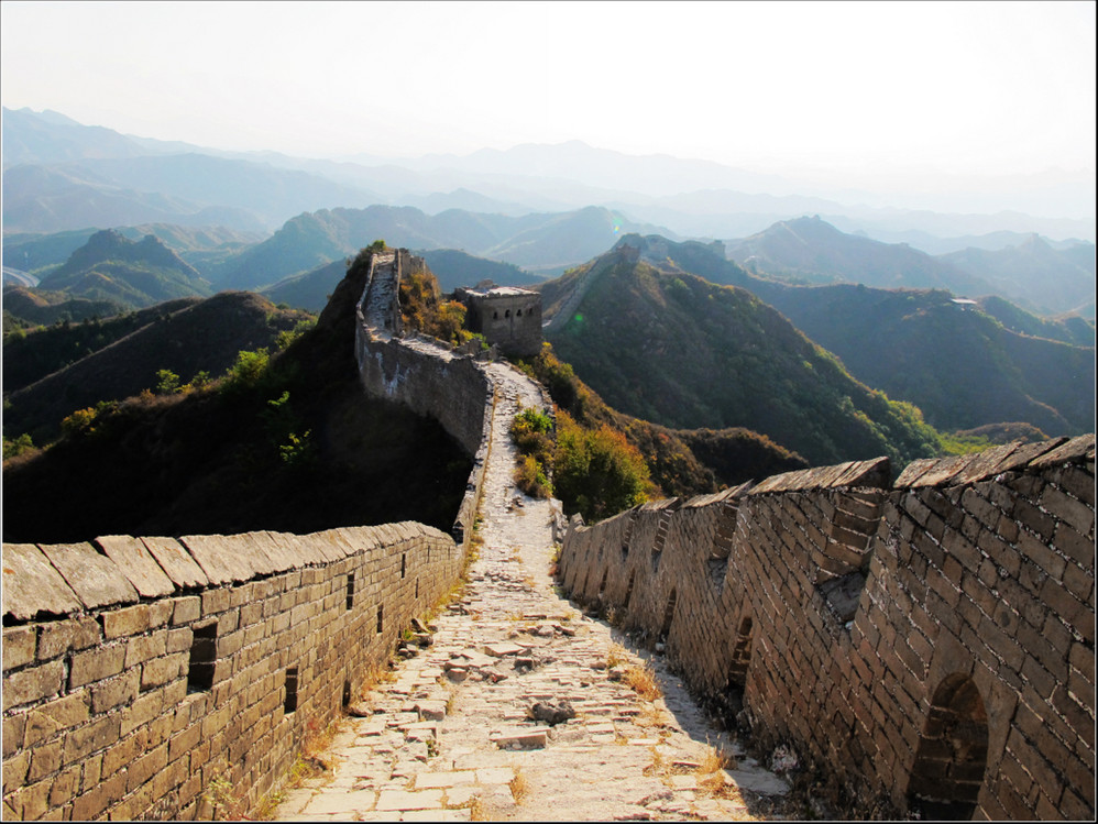 金秋十月的某一天,登上了雄伟壮阔的金山岭长城。极目远眺,万里晴空下,巍巍长城如同一条巨龙横卧在群山峻岭之上,蜿蜒曲折到目不能及。不论从哪个角度看,都能让你倾心感受到古长城的壮美与雄浑,更让你绝对不会吝啬自己的相机快门。当晚霞初现,美丽的夕阳散发出金黄色的光芒,暖暖的铺满长城内外;缓缓的落日由深黄到殷红直到渐渐隐去。享受着金灿灿的夕阳,欣赏着落日余晖下古长城的浓浓秋色,真是美哉!壮哉!