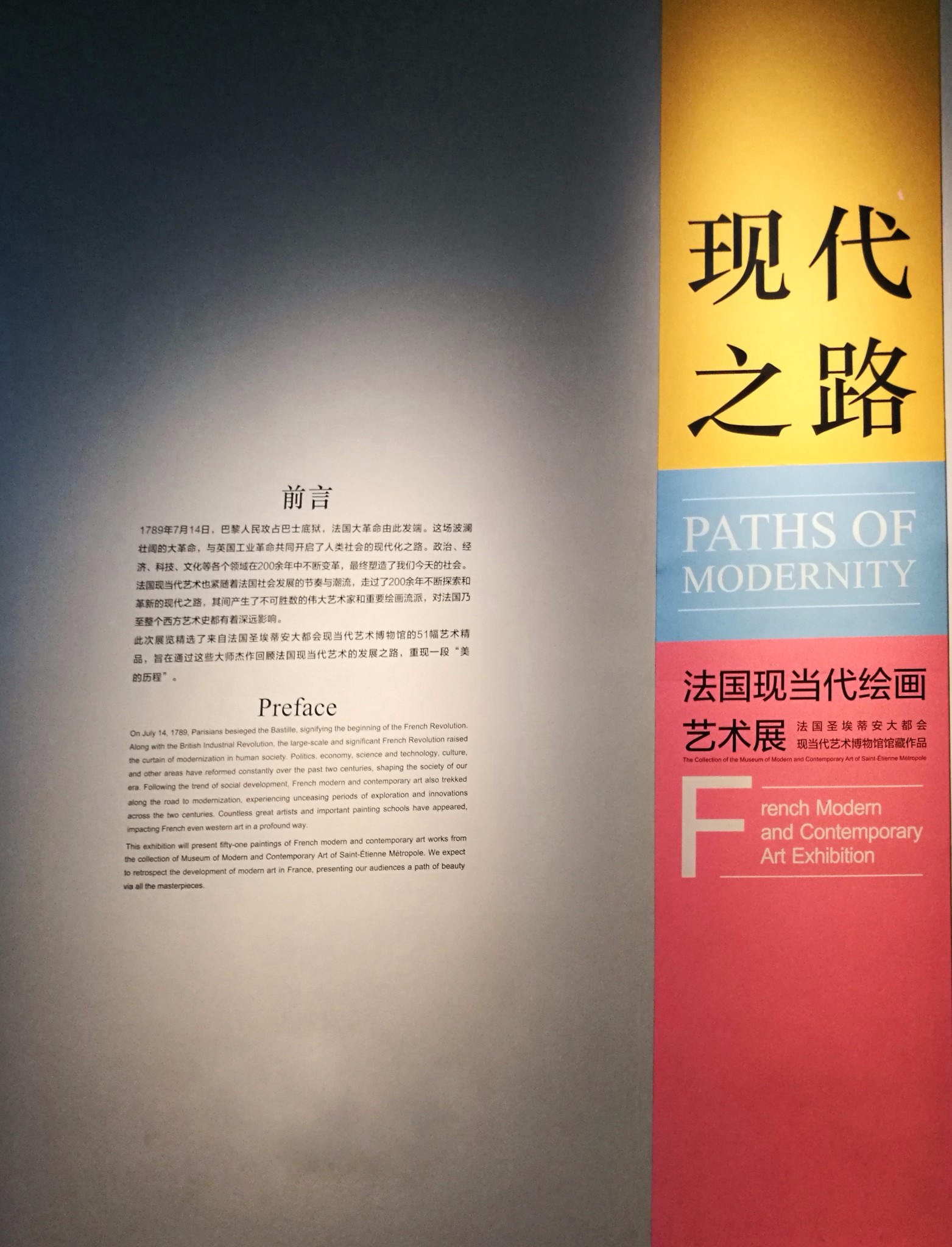 这个展馆禁止拍照,就只拍了这张广告。《现代之路——法国现当代绘画艺术展》在成都博物馆展出,51件来自法国圣埃蒂安大都会现当代艺术博物馆的西方现代经典绘画,汇集莫奈、毕加索、马蒂斯、苏拉热等大师的画作,免费向观众开放。