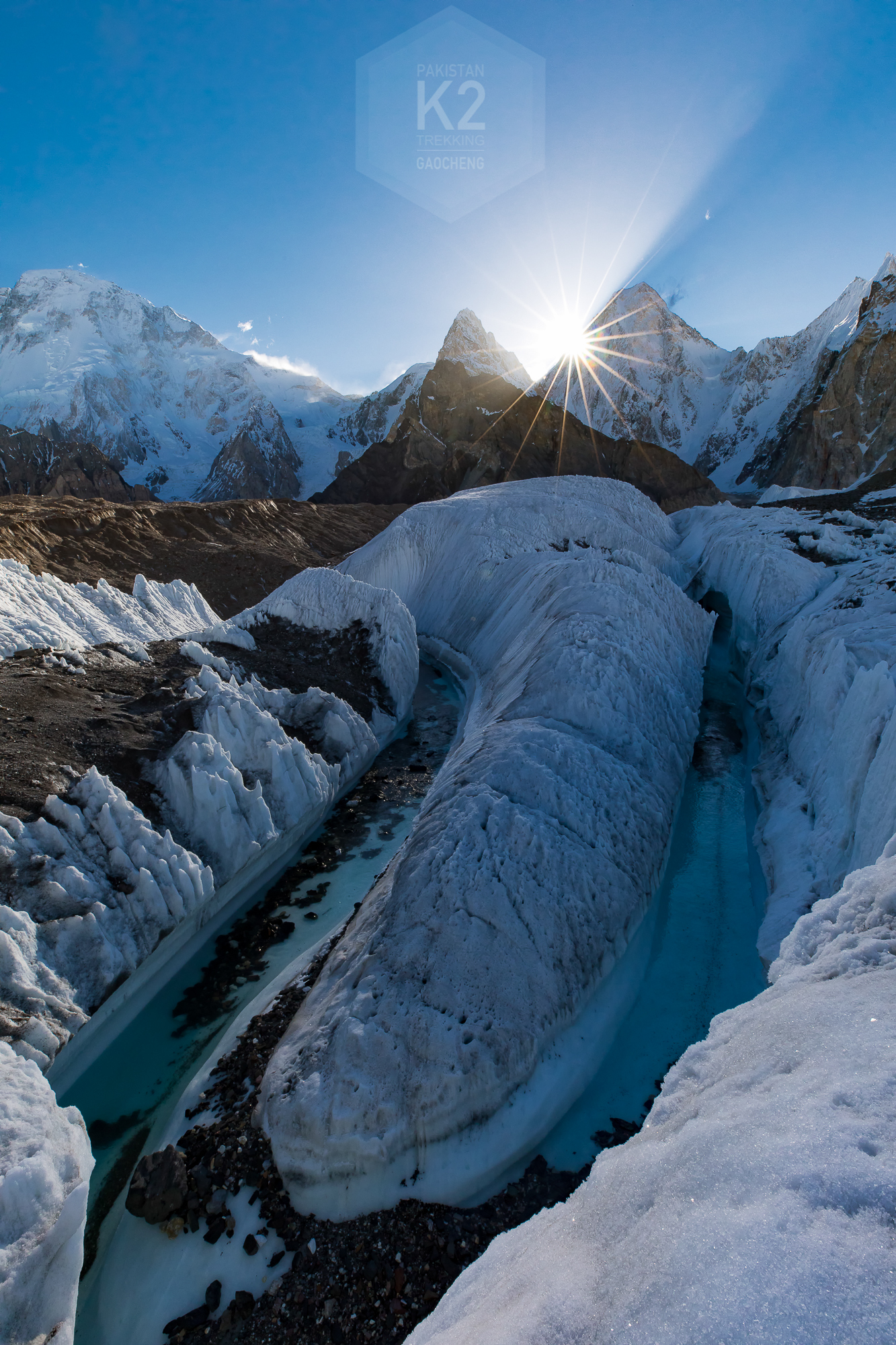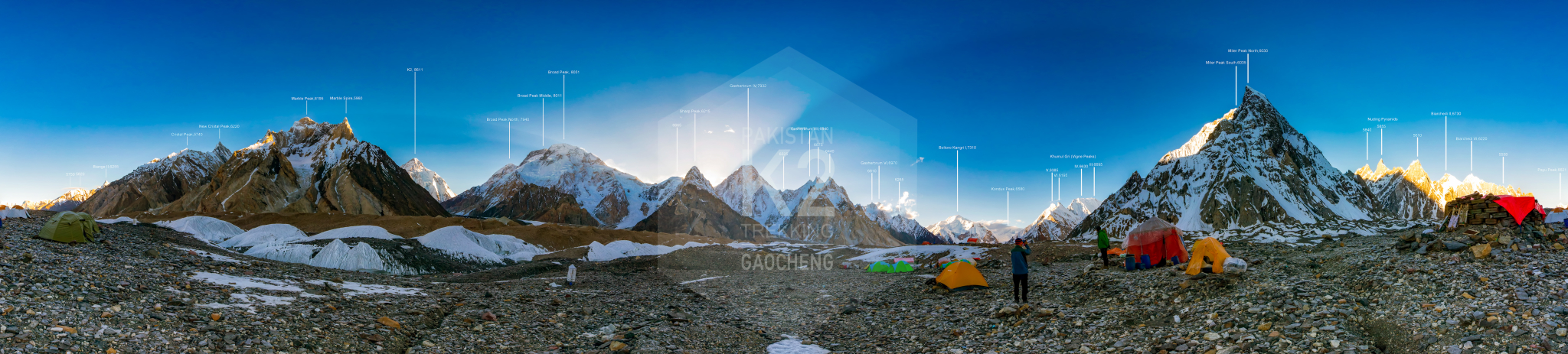 在这片与中国交界的山区中孕育了与喜马拉雅山脉齐名的喀喇昆仑山脉,全世界气候条件最恶劣的雪山腹地,诞生了世界上最独一无二也是最顶级的的雪山徒步线路。包括世界第二高峰K2在内的4座8千米级雪山以及数十座6、7千米的雪山群落,使得这条线路成为世界徒步爱好者的终极目标。当然,如果在登山季前往,还可以遇到来自全世界的高海拔登山爱好者,可以毫不夸张地说巴基斯坦简直就是高海拔登山徒步的天堂。