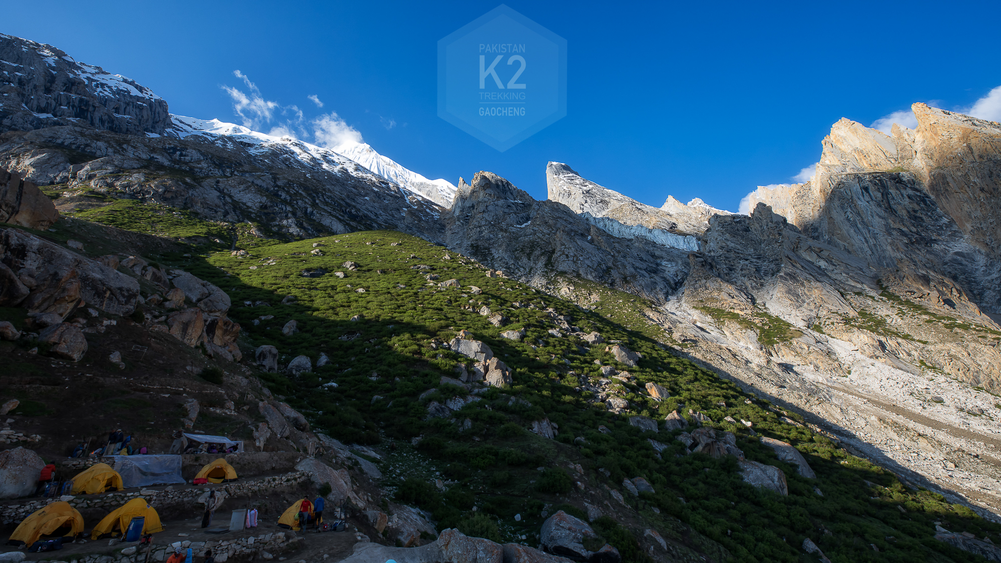 喀喇昆仑K2徒步线路上少有的绿草营地——Urdukas营地。