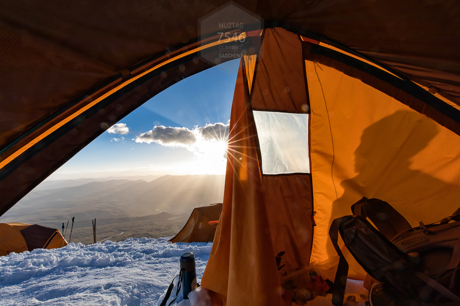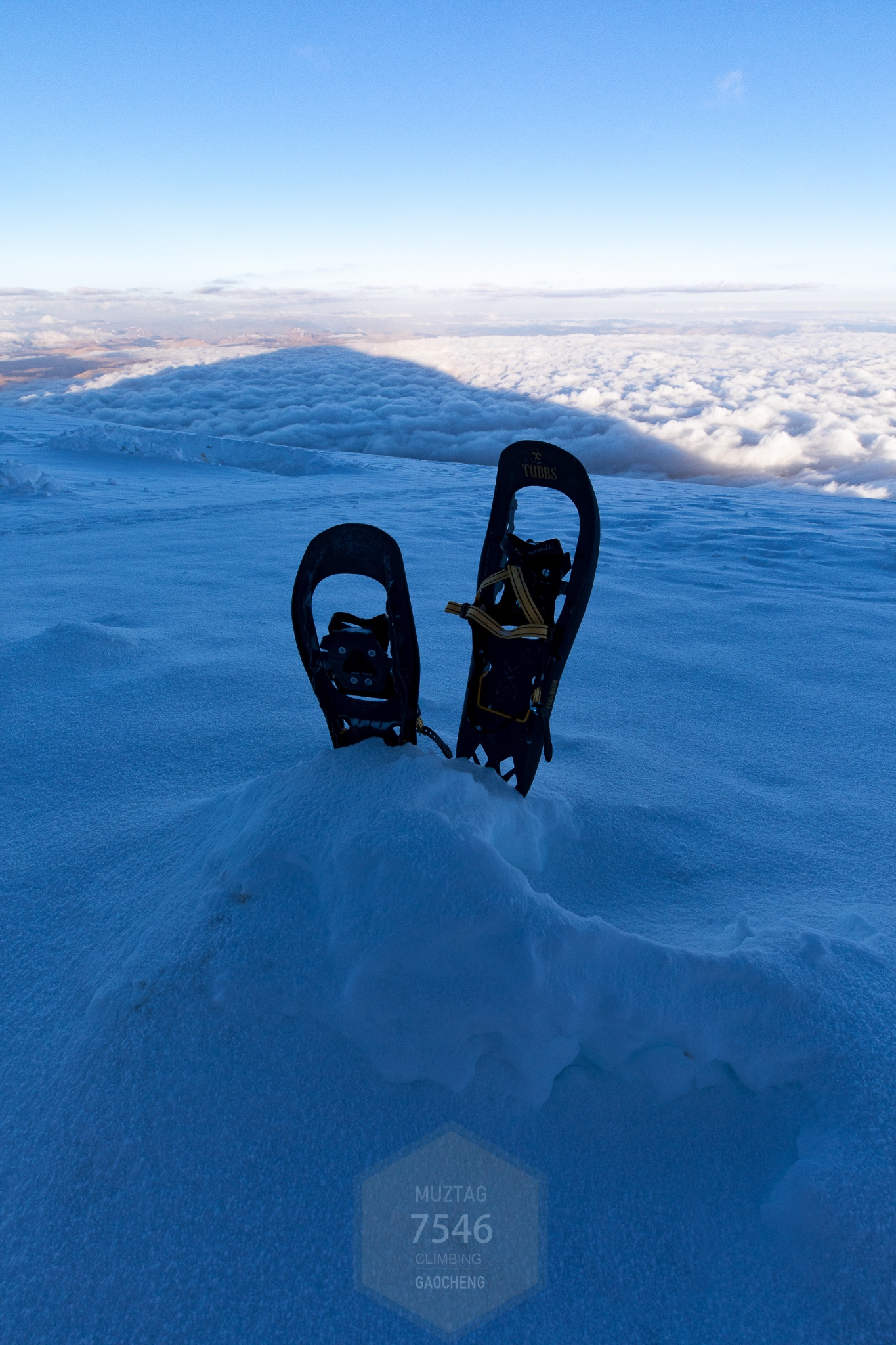慕士塔格C2营地,登顶下撤至此休息一夜,第二日清晨,慕峰给我们最美的送别礼物,站在6200米的营地欣赏帕米尔高原的云海以及慕峰巨大的山影。