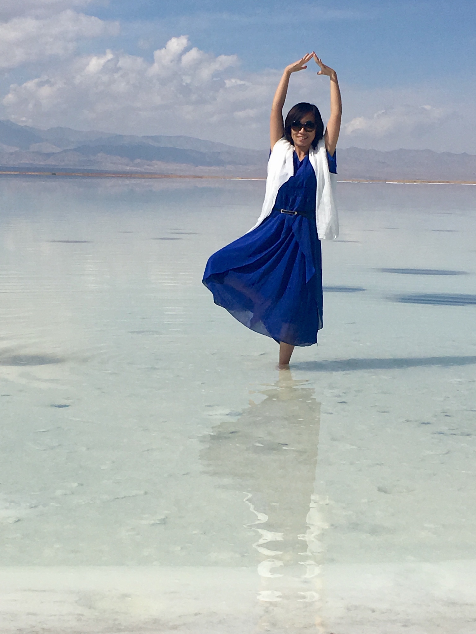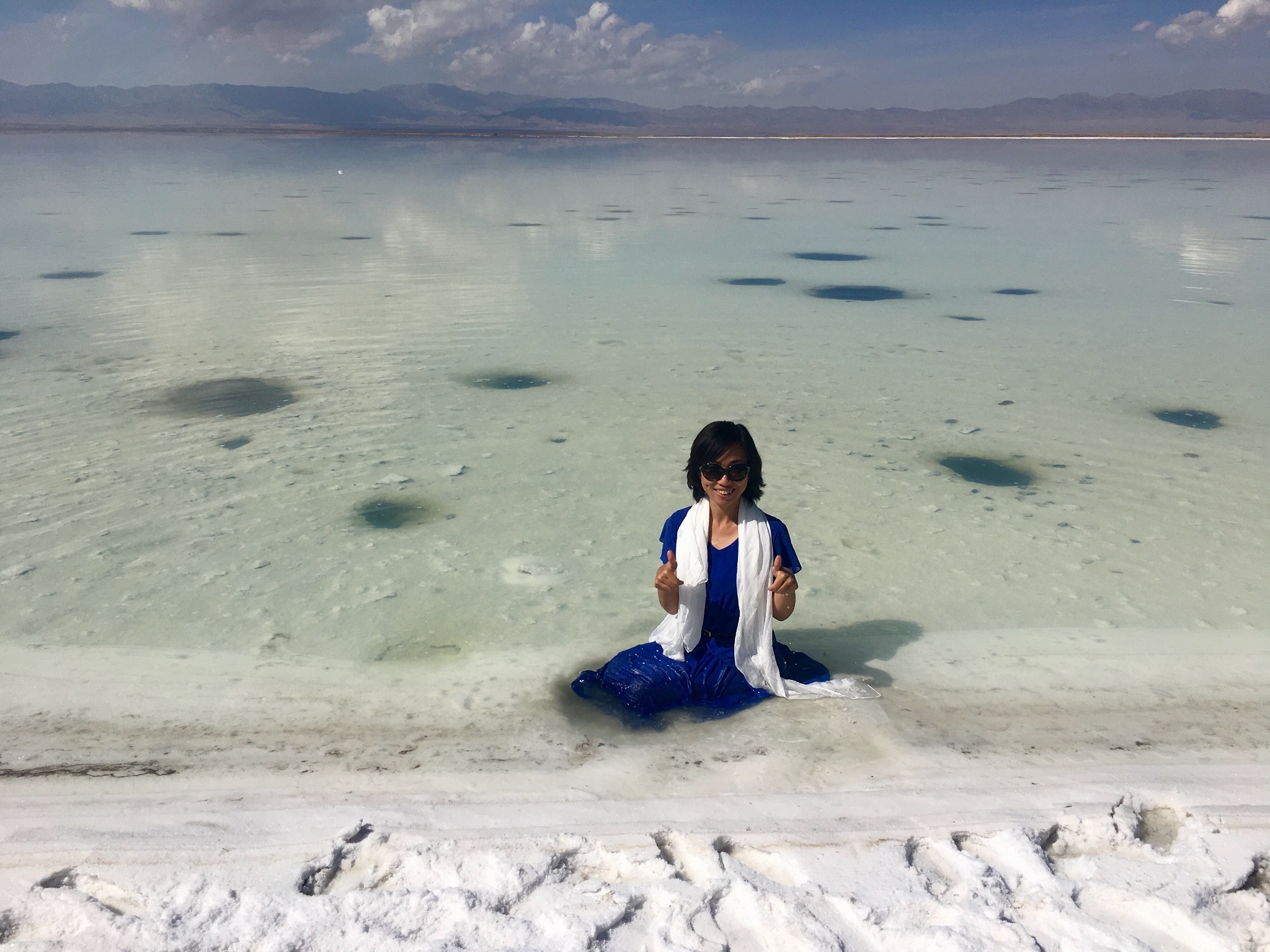 话说红色裙子和红纱是标配,偶由于特殊原因选择了蓝色,倒也别树一帜。盐湖大概需要三个小时游览拍照,不过估计人多感受就大不相同啦。