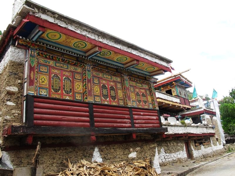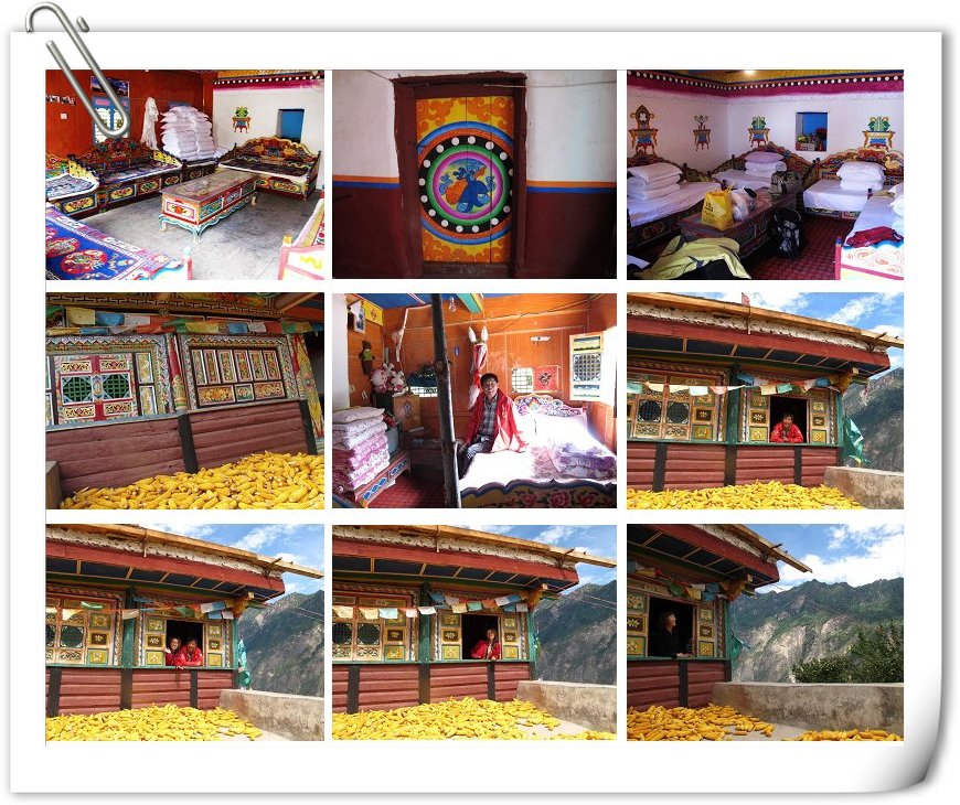 藏民的房子全部建在高高的山上,原木搭建的房子,装饰着浓艳的色彩和图案,房间里摆着,一张张华丽的床,处处都让你兴奋不已。