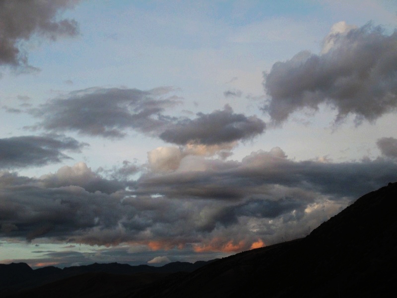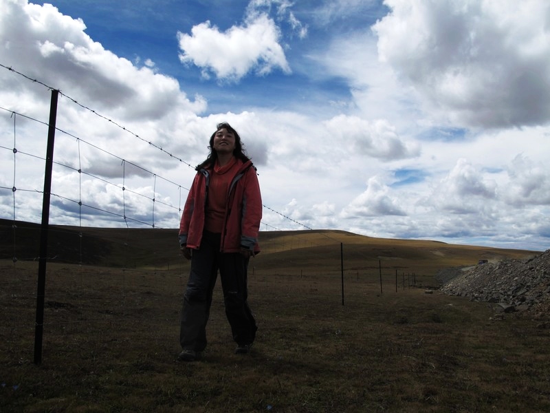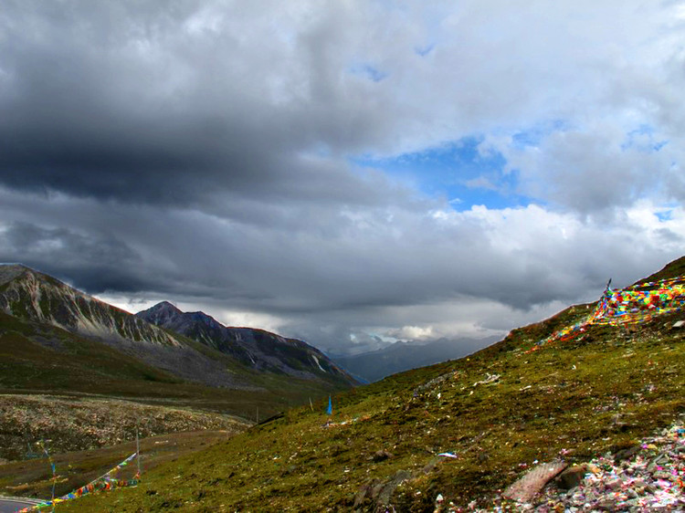 高原的气候多变,刚刚还被紫外线强烈的阳光烤的暖暖的,现在却是乌云肆虐,霸道的侵占了整片天空,不过,它阻挡了紫外线,功不可没哦。