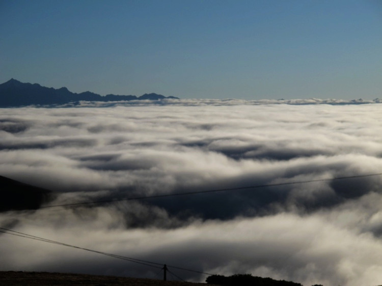 一路上最吸引眼球的,还属那变幻无穷的云儿了。如花的、似朵的、这里出现了海市蜃楼、那个筋斗云里一定有孙猴子,等等等等。有的从天而降,有的自地而升,繁杂多 变,使人目不暇接。