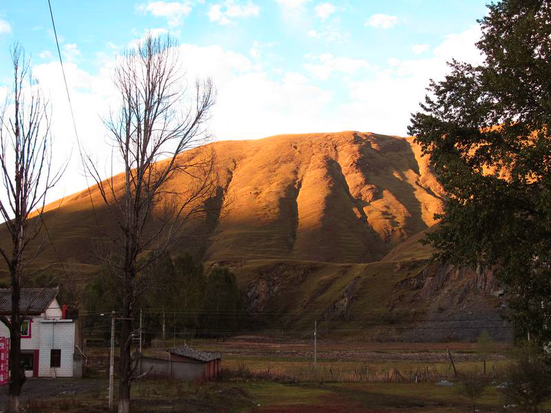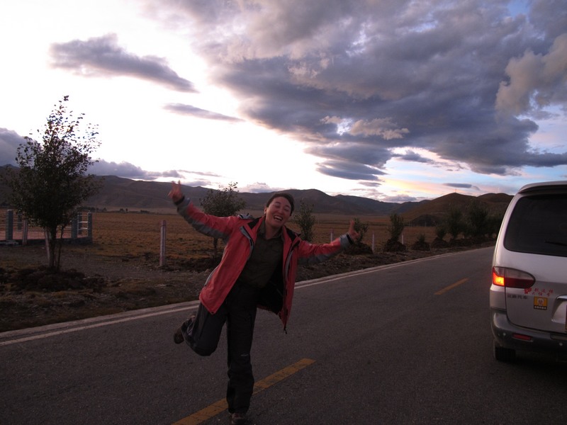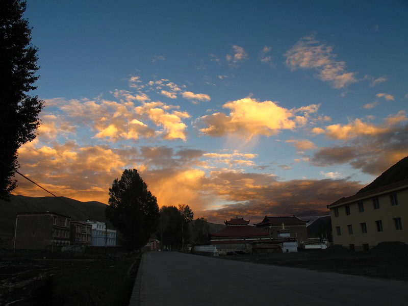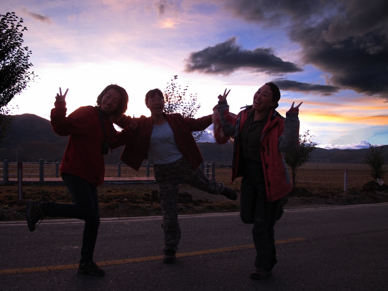 第 一天的傍晚,来到了有“摄影天堂”之称的新都桥 。准备去看日落的美景,一打听骑马也要半小时,那岂不是,即便到了,太阳也早已经落下去了,放弃了去景点看 日落的计划,就在酒店附近随便拍几张吧。反正,回来还要在新都桥 自由活动一天的,有的是时间(后话,这一天,回来的路上被我们PS了)。