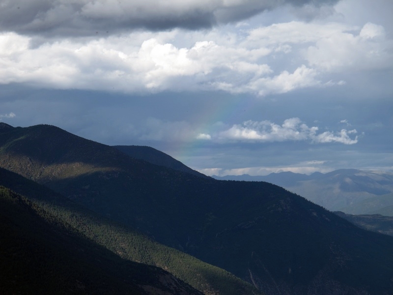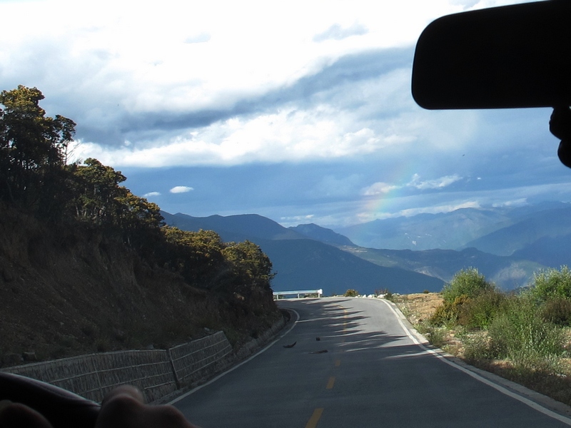话音刚落,正前方一道彩虹突然而降。快看快看,彩虹,我们看见彩虹啦——噢噢!惊喜的表情可想而知。
