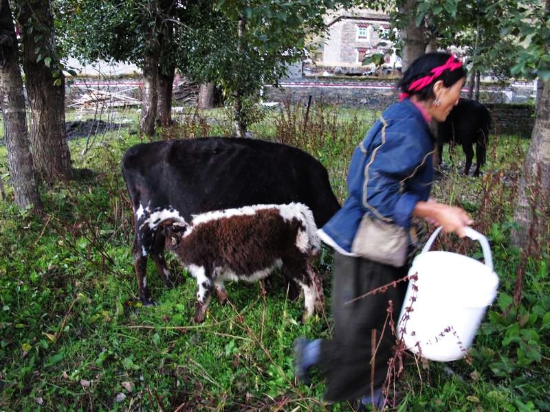 高 原上的牦牛,全部是散养,牦牛奶是百分之百纯天然无公害的,很想尝尝它的味道。看见对面的草地上,藏族大婶正在挤牛奶,过去问问能卖给我点不,大婶说可 以,看着大婶熟练的挤着,几下就挤了好多,倒一碗给我,闻一闻,奶香扑鼻。当我拿钱给她时,她却说啥也不要,说是自家养的牛,不要钱。而且,告诉我,牛奶不能直接喝,要烧开,多滚几开再喝,不然会闹肚子的。藏族大婶的淳朴热情,我叙说与你听。