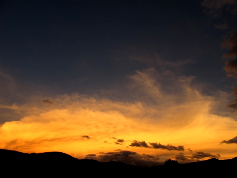 当最后一抹落日的余光,落进漫天的乌云,那有些恐怖的美,酷酷的,挑逗了我们的神经,就有了这阿细跳月般的画面。
