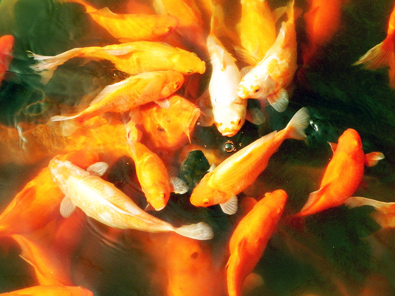 鱼池 中的万尾金鳞红鲤。