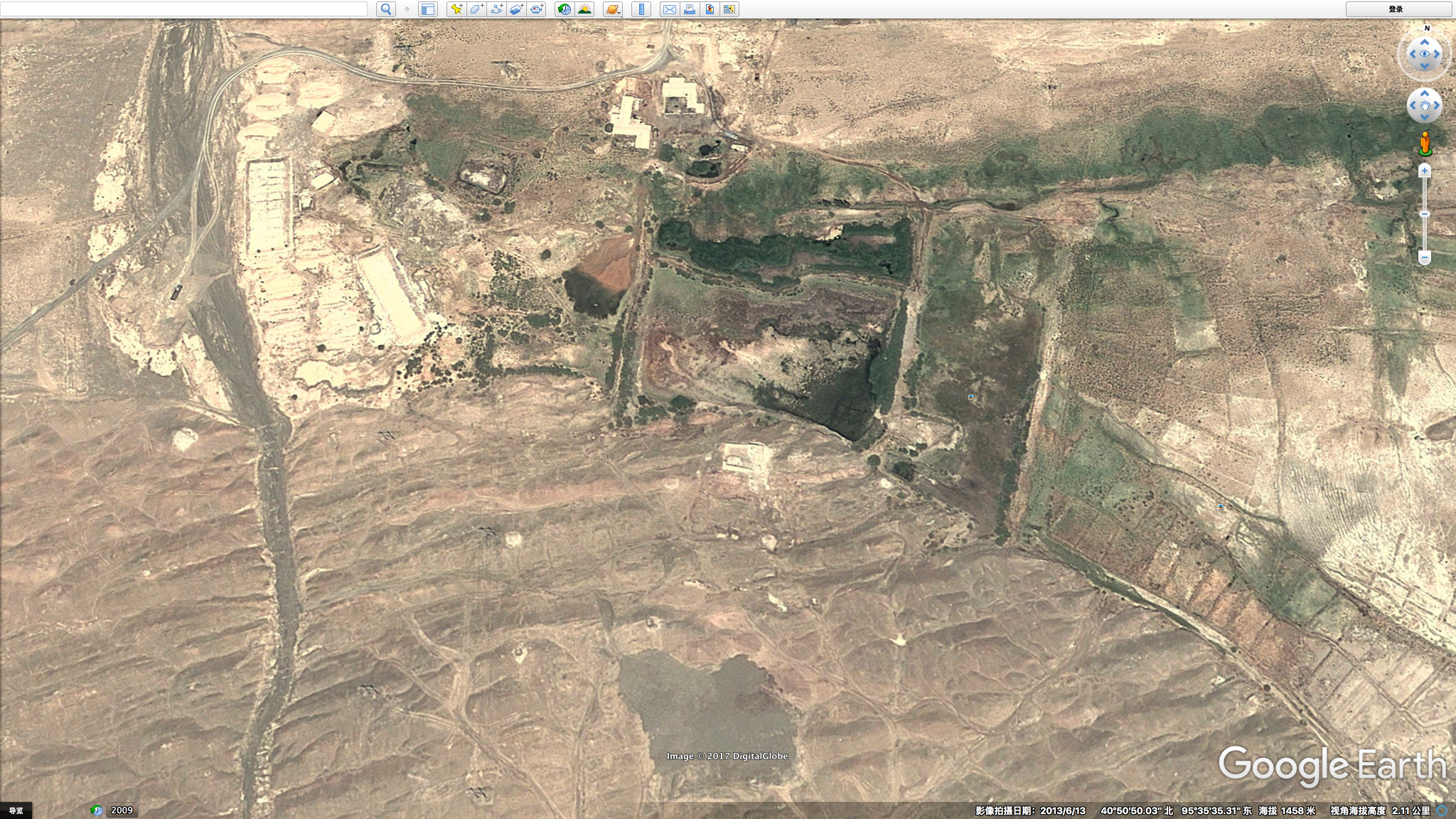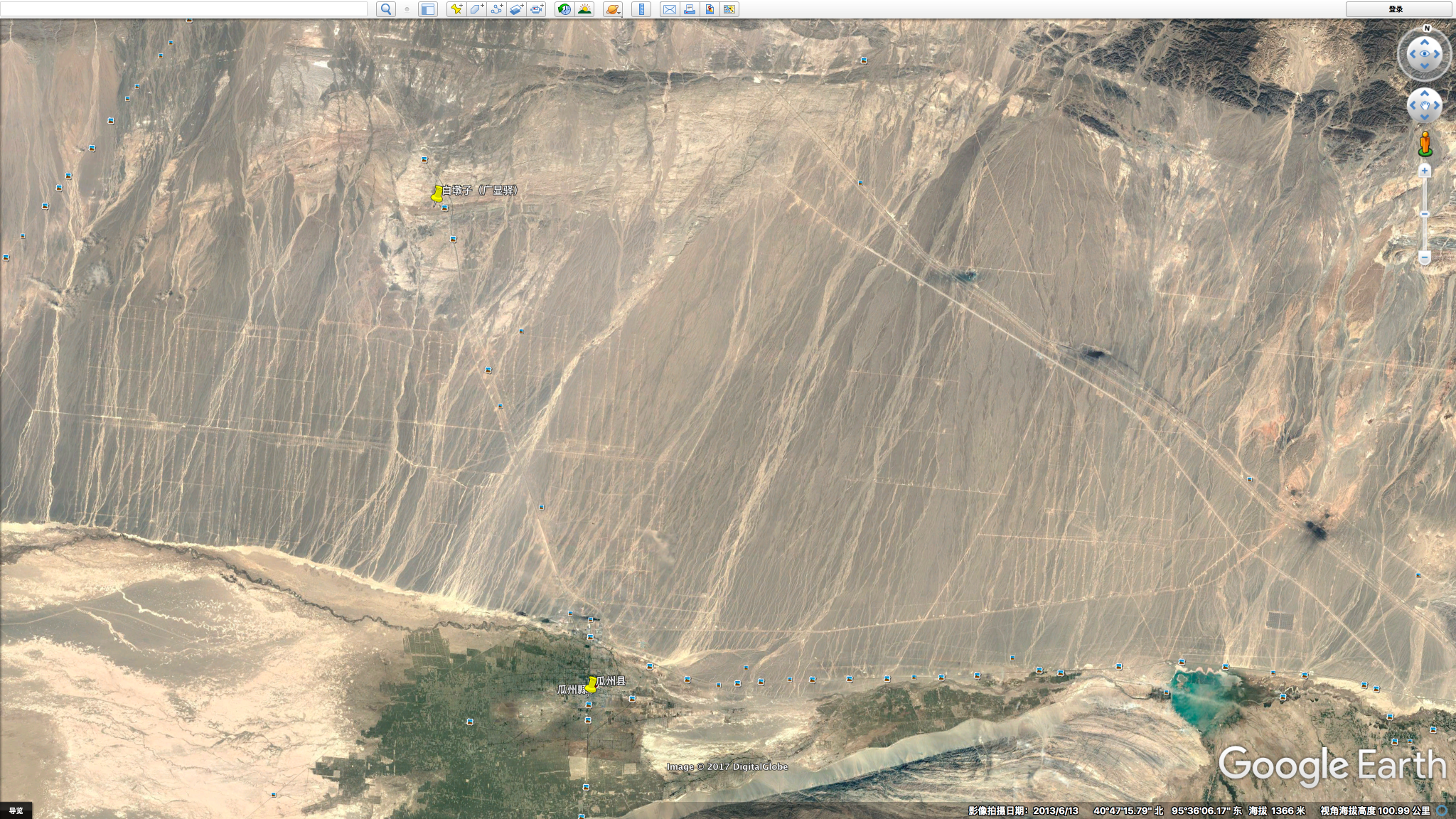 下图中 右下为瓜州,左上为白墩子,两地之间都是戈壁。