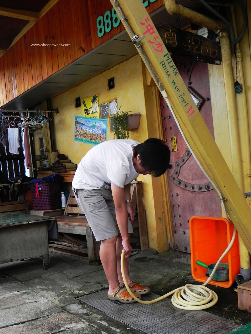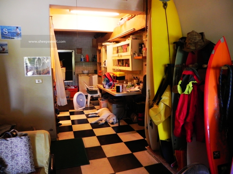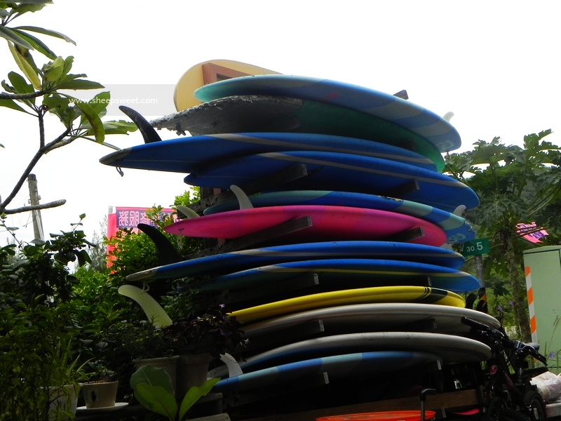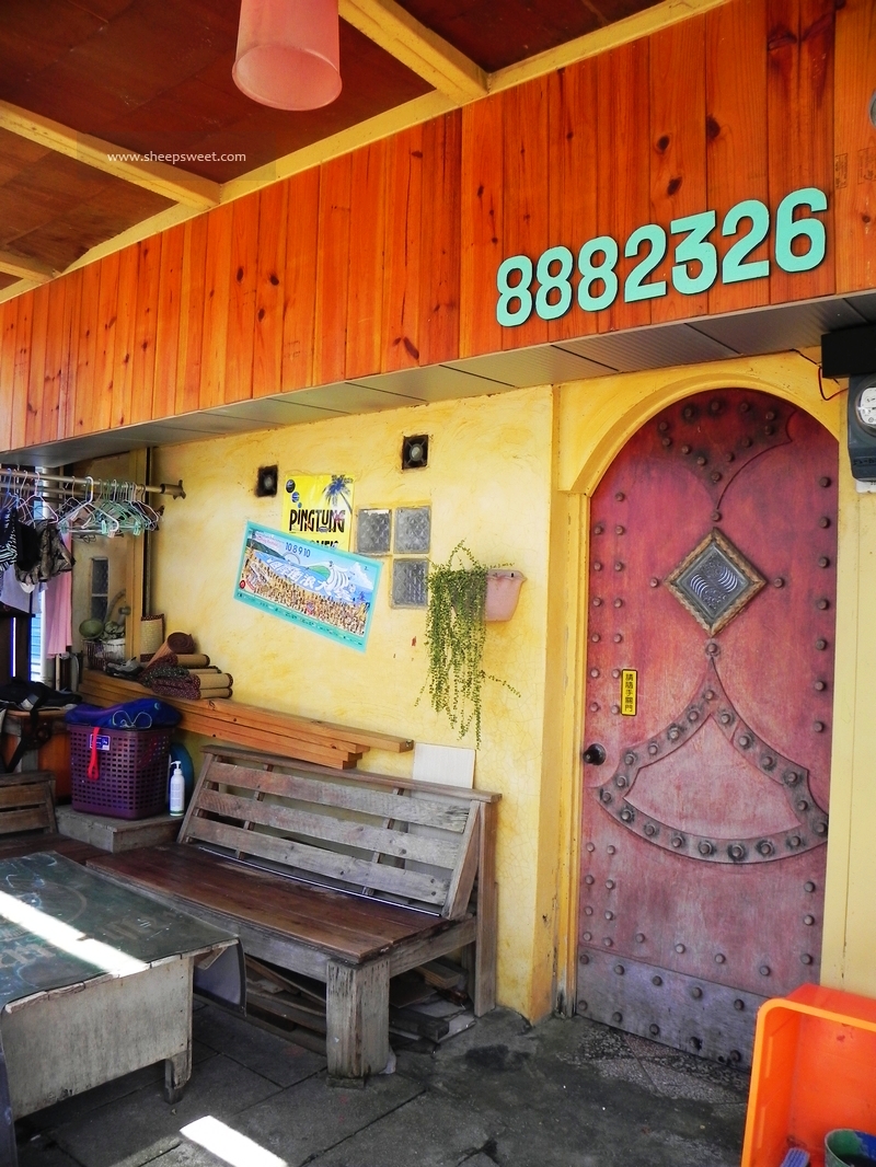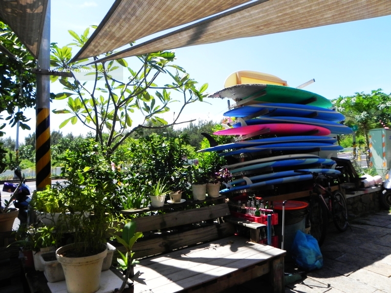 差不多11点半的时候,我们就到了下榻的民宿啦!南湾226号“A-WU名宿”,这是一家冲浪海滨民宿,很多冲浪板迎面“扑”来~~原木色调的设计,很自然纯朴呢。