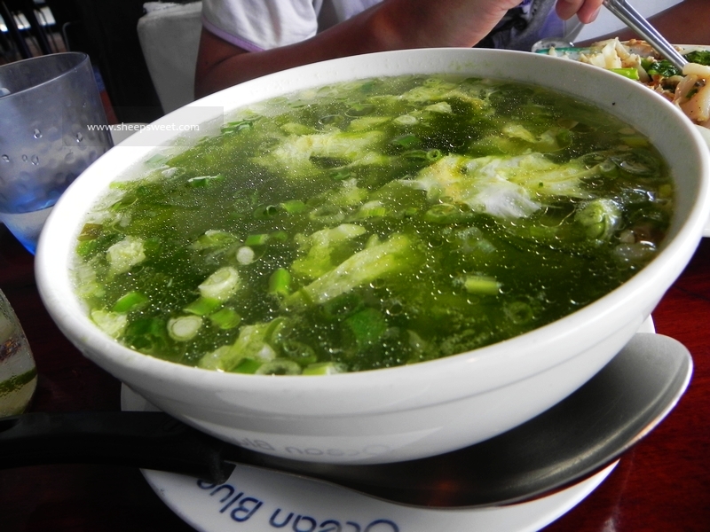 装潢得很十足东南亚 风情海岛风情。我们分别点了海鲜炒饭和炒河粉,还有一份海菜豆腐汤。