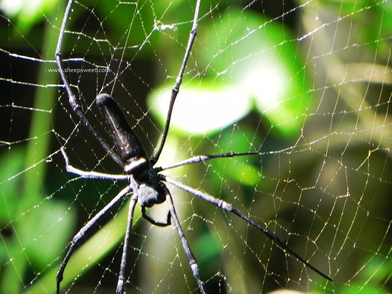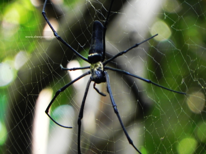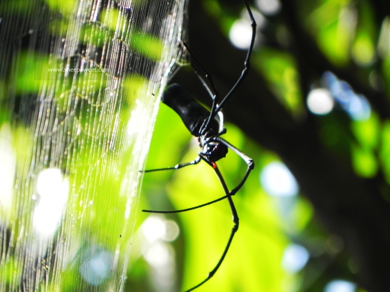来了来了,没走两步就遇到了第一个毒虫!拳头这么大的蜘蛛,说它无毒无害我还真不信,网织得很低,姚明要是不注意一定铺头盖脸,不要死也要吓死了……