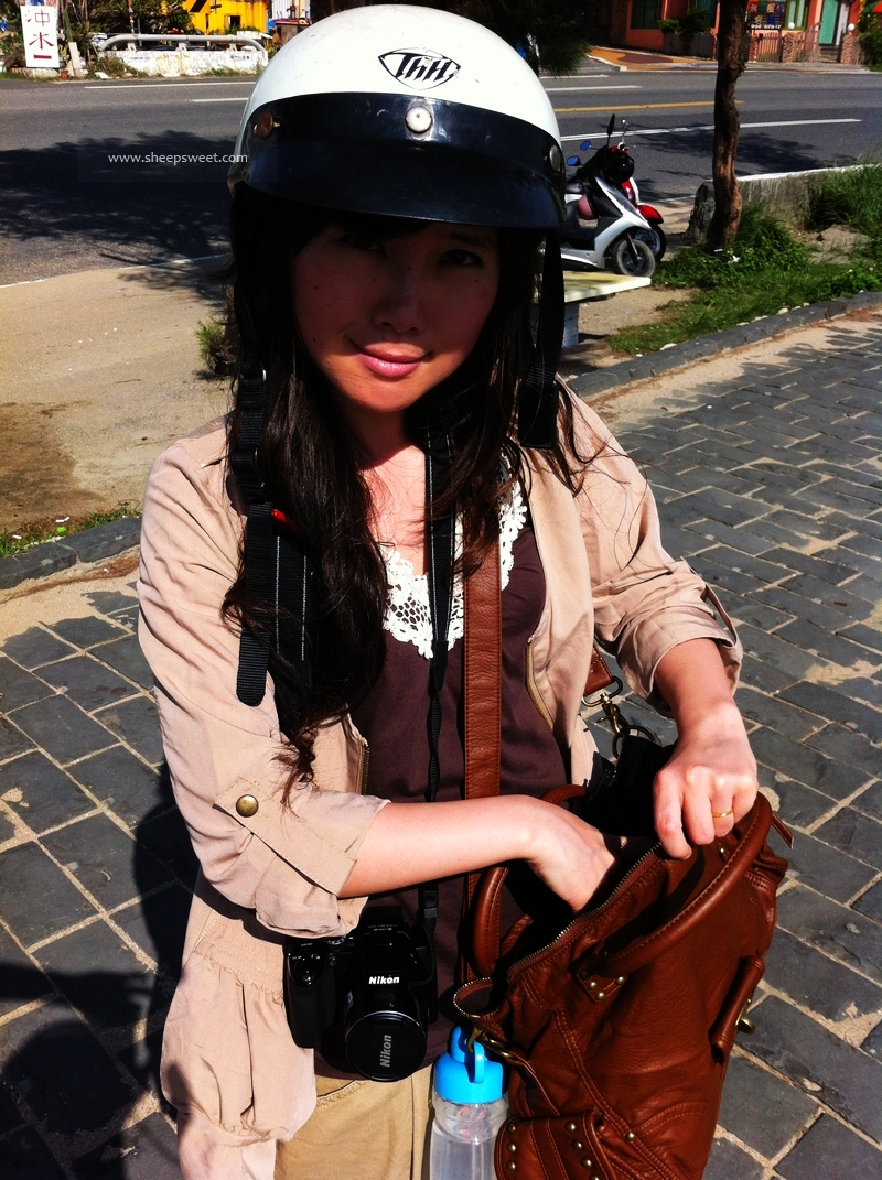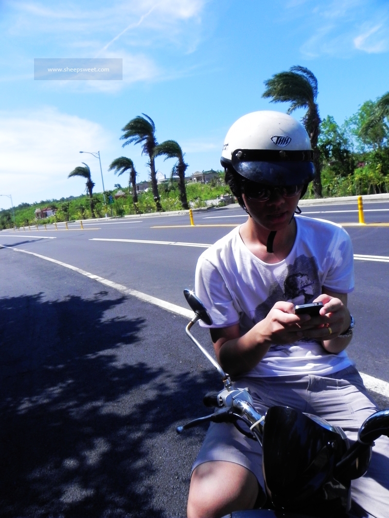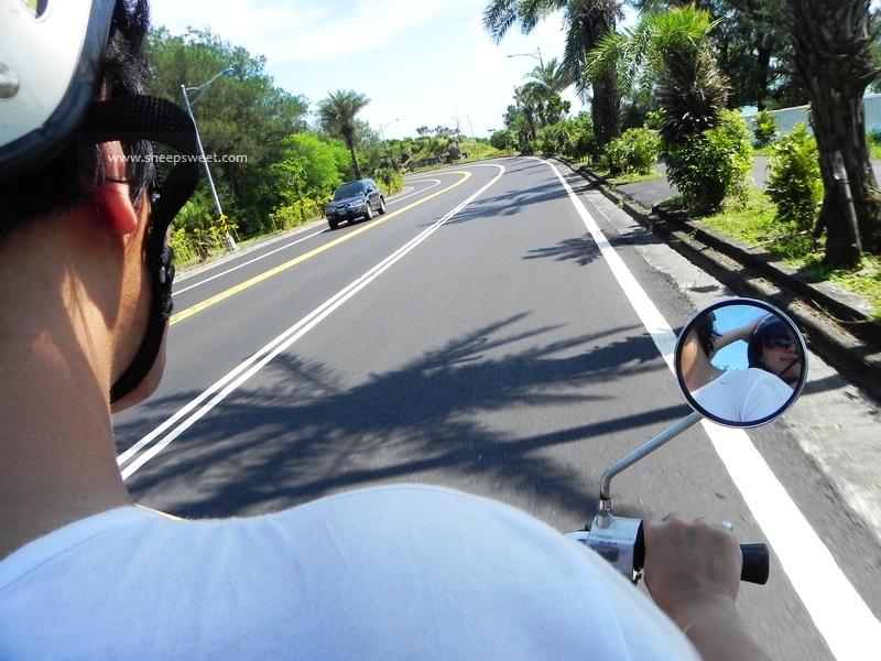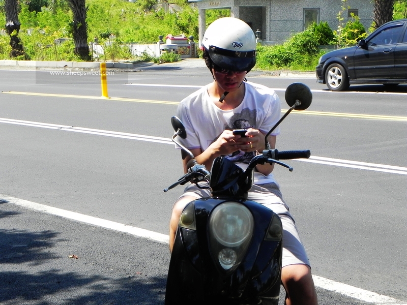 话说sheep没怎么骑过机车呢,我的机车技能又基本退化,俩人骑车出游还是很心虚的,不过颠簸可没多久,sheep就掌握技巧熟练了起来。我们跟老板拿了垦丁 地图后,领了两个头盔,就化身偶像剧男女主角屁颠颠地骑车畅游垦丁 去啦~~