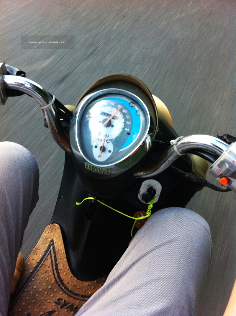 这么多的机车,我竟然挑了一辆最破的。。。老板听到我坚持要这辆试驾的机车的时候,也错愕了一会。郁闷哇,我当时只是觉得最破的那辆看起来很可爱,而且sheep试驾得还顺手……看来真的不能给女人做决定,通常都会给外表蒙蔽的。