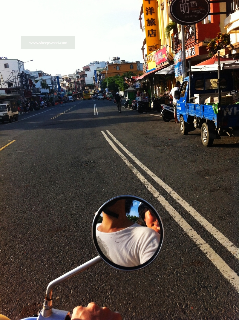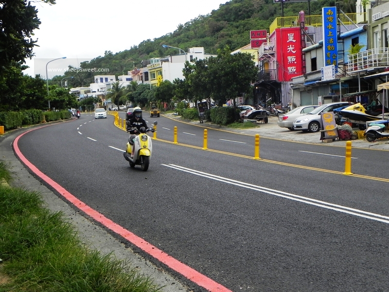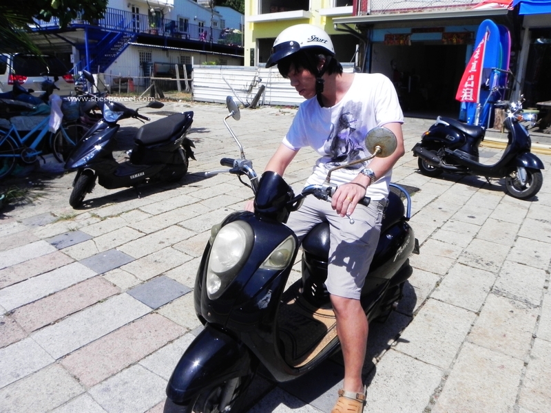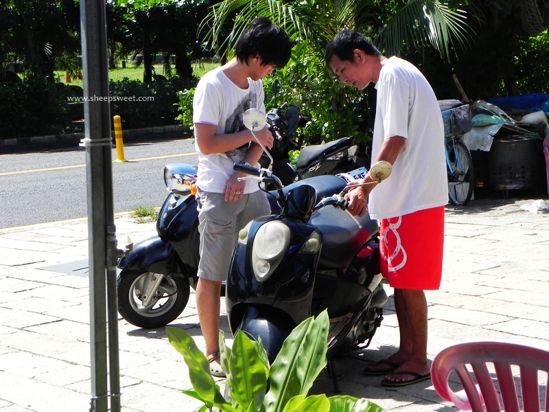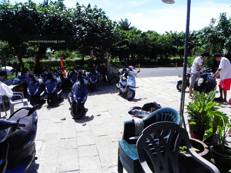 沿路有很多出租机车的店铺,出示国际驾照,还有抵押一些证件就能租到机车了。但我没有驾照,sheep只有国内驾照还没有带,只好恳求了老板,当下演示了骑车能力以后,老板才答应我们抵押身份证,并小心驾驶。收费是400NT/天(24小时),其实我们后来才知道有点租贵了,300NT就能租到