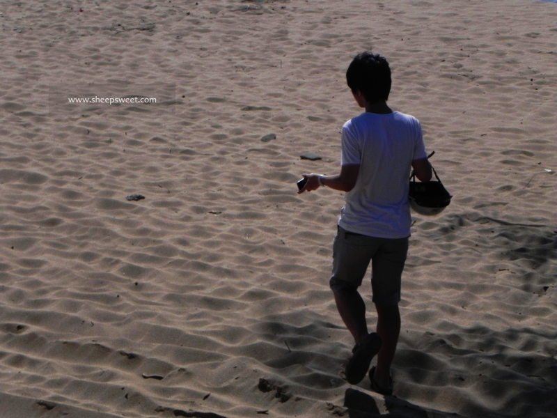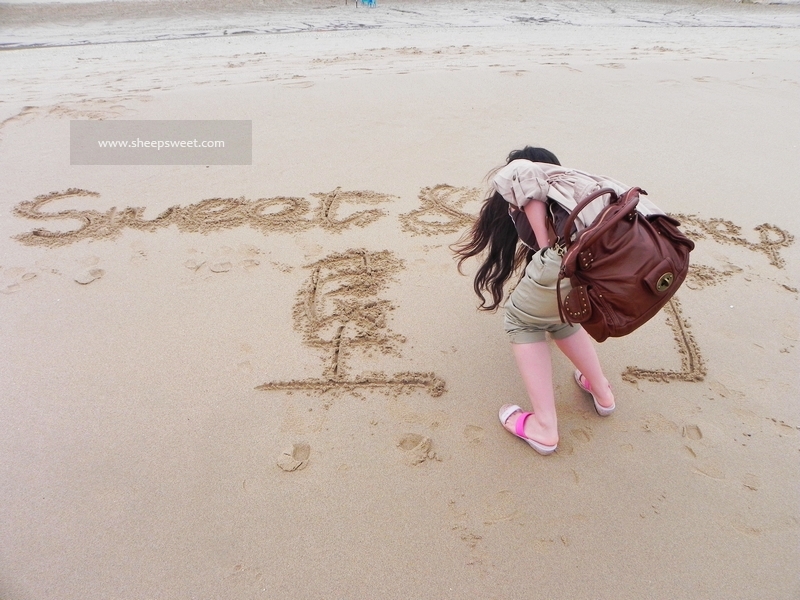 似乎来到海边,人们最爱的就是在沙滩上写字。sheep看到我拿着小石头在写字的时候,非常不屑地说“没人看出来你在哪写的啦,沙子还不是和白城 一样”,这人……非常之没有情调。