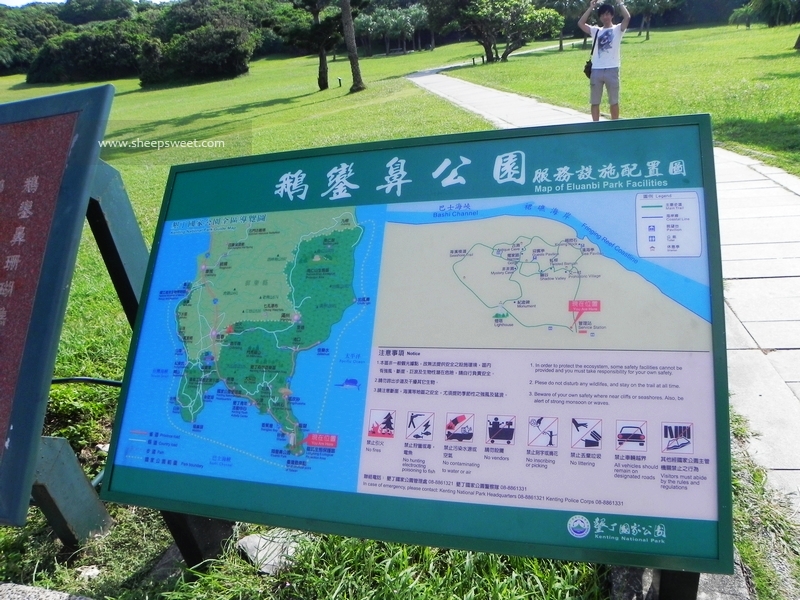 等到我们到达鹅銮鼻公园的时候已经快下午三点了~~进入鹅鸾鼻景区,就看到很多旅游大巴和游客,才有点旅游景区的意思。我们付了10NT的停车费,机车没有锁,本有点不放心,看着一堆机车停放在一起也都没上锁,也就不担心了。
