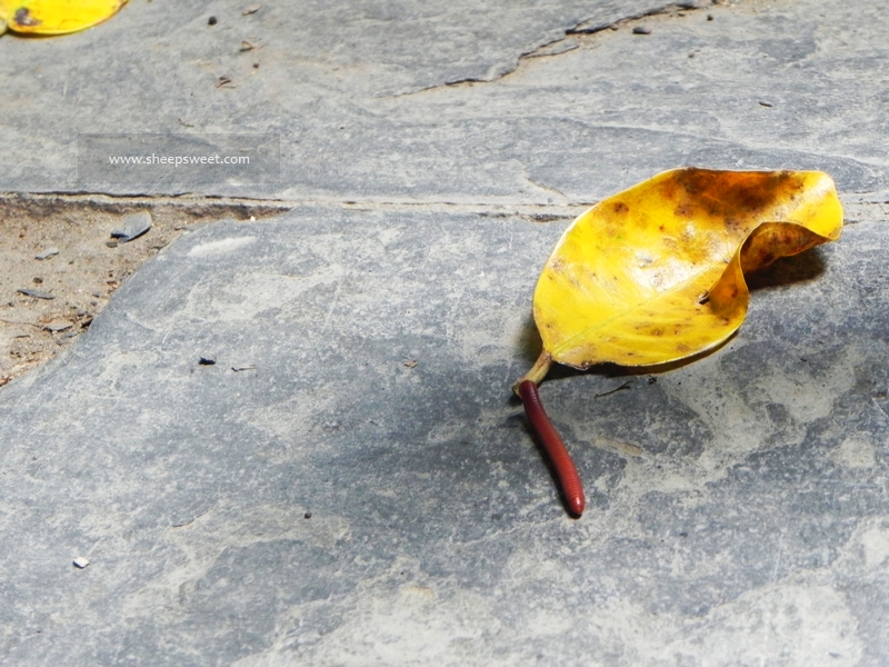 遇到了第二个恐怖的小虫,有一个手指那么长,后来翻查资料才知道这个应该是马陆,俗称千足虫,没有毒的。但是我最怕这种爬行动物,当下是吓死我了。