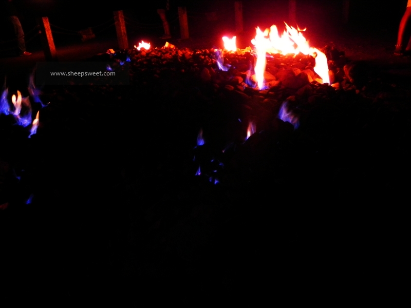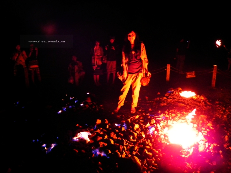 第一次看到这种自然现象,我和sheep都有点好奇,火苗随风四处游移。居然还有游客试图烤点什么……还有一群年轻人在火苗中拍视频送祝福,好有意思呀。