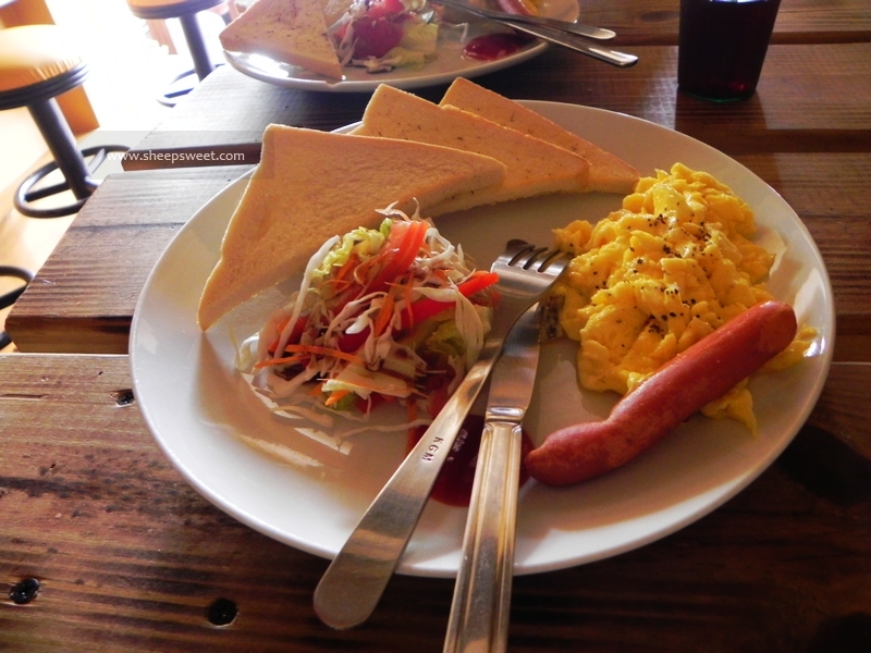 早餐很简单呢,如图所示,嗯……蛮吃不惯的。看到这么多生菜,sheep脸都绿了。