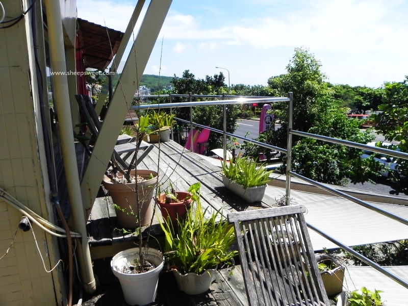 阳台种了很多小盆栽,还和隔壁的民宿紧挨着,一翻就翻过去了。。