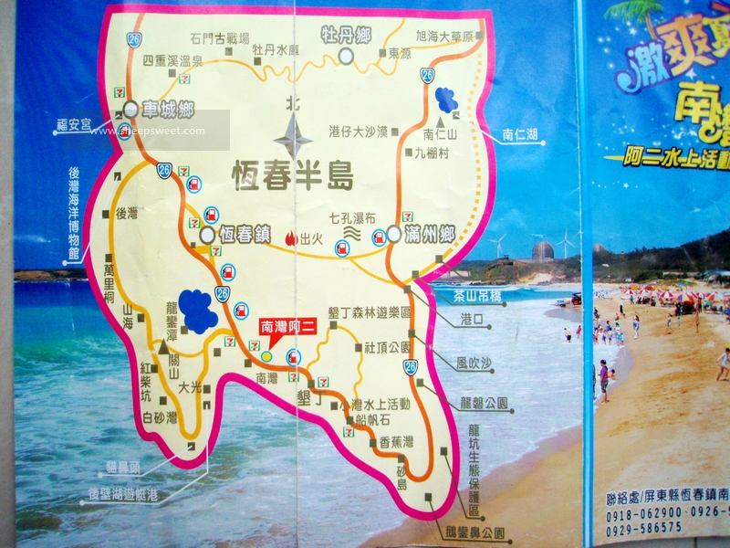第二天不到十点,我和sheep就坐上了预定的接送的士,前往位于台湾 本岛最南端的恒春 半岛上的垦丁 。因为《我在垦丁 天气晴》,各种阳光各种冲浪板各种帅哥各种浪漫气息,让我对垦丁 的美丽充满了各种幻想,那一定是一个热情奔放的地方。