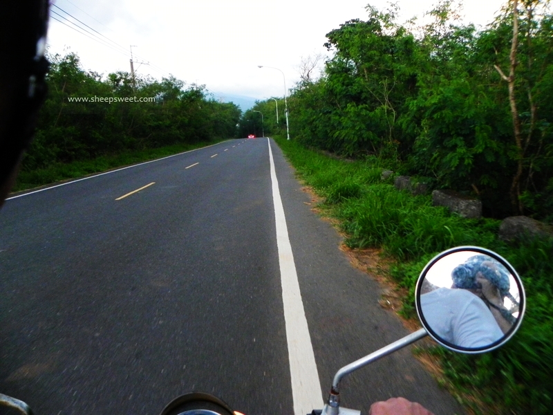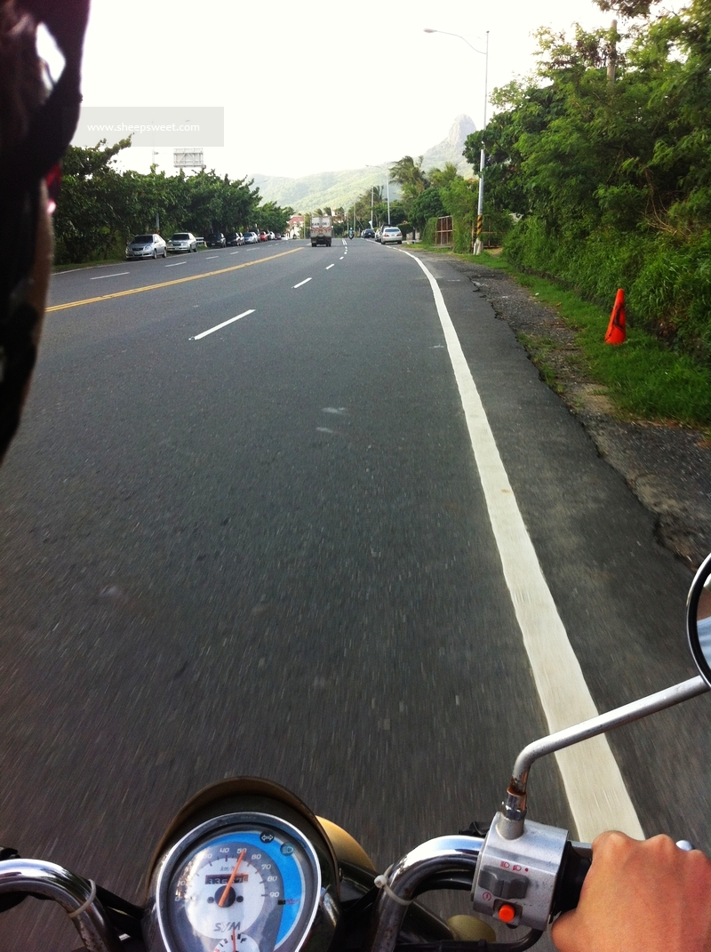 我紧搂着sheep,因为怕风吹,脸深深埋在他的肩背上,感受着他的温度,幸福感倍增。这是来台湾 以来,最没有压力的一天,最幸福的时刻。我对sheep说,要是能永远住在这不回去多好,要是能永远停在这一刻,有他为我挡风遮雨……真好。