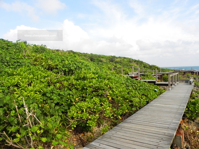 其实就是长长的海滨木栈道,一边是草木丛生,一边是广袤大海。