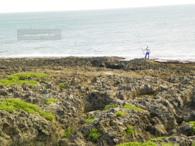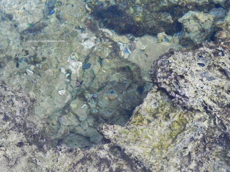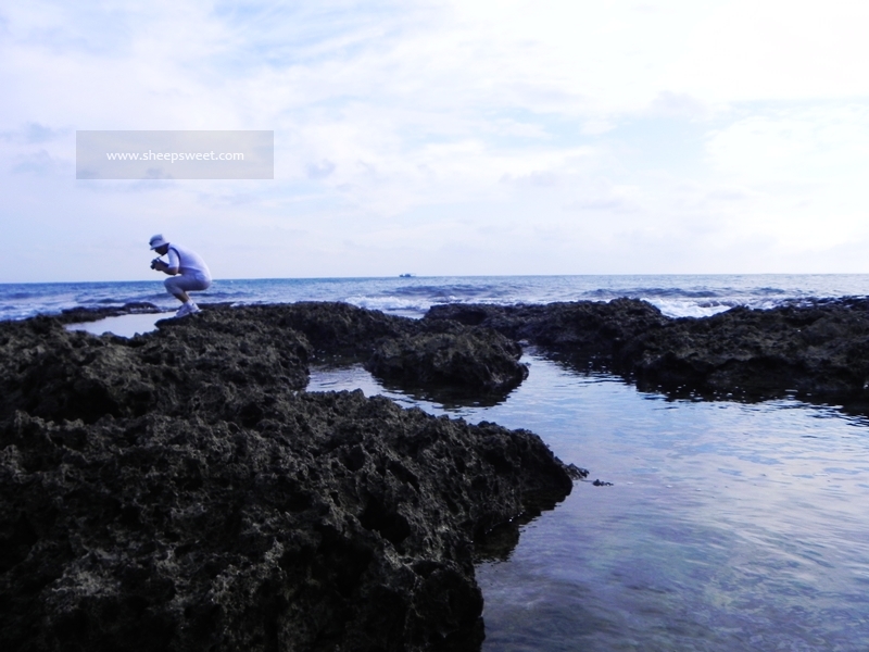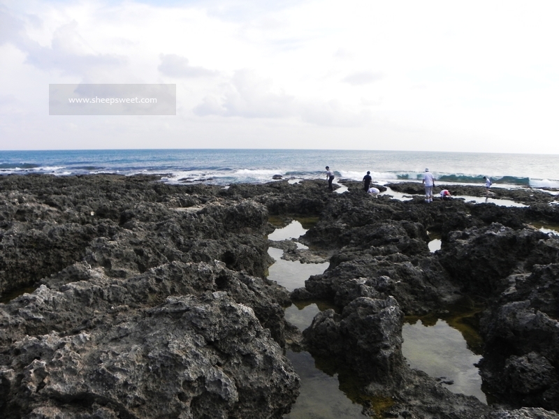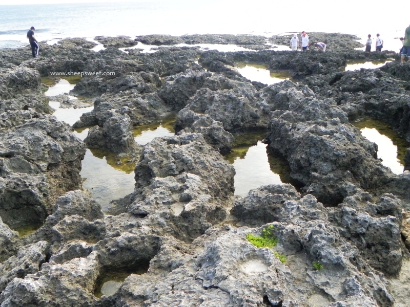 这个……真的非常难走啊,有硬又畸形的礁石(珊瑚礁?)把我们鞋底咯到不行,直接给戳出好几个裂处!不带这么摧残别人鞋子的吧!!