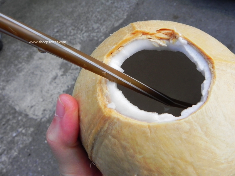 口渴难当,看到门口的椰子摊,我们两双眼睛都发光了~