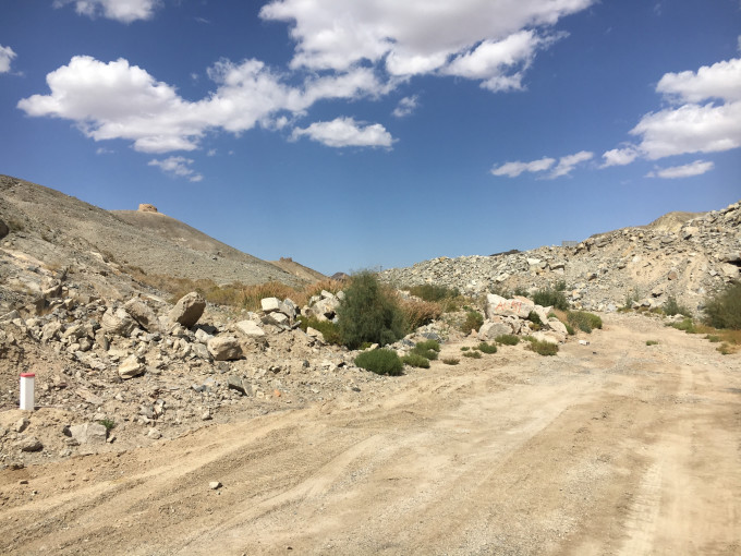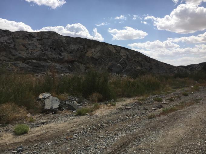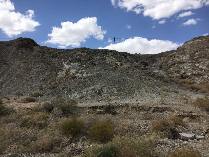 我明白了,脚下这路就是原甘新公路。G30(原G312)是在老路边另开辟的。虽然这路年久失修,坑洼不平,修建G30时,开辟的山石掩埋了部分老路路面,但就是脚下这条路。