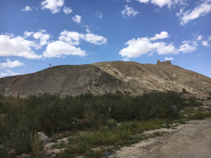 我沿着它慢慢向上走。一边走一边看山头的土堡,想象在海上仰望蓝天的感觉,G30上的重卡车声反而使老路显得分外安静。