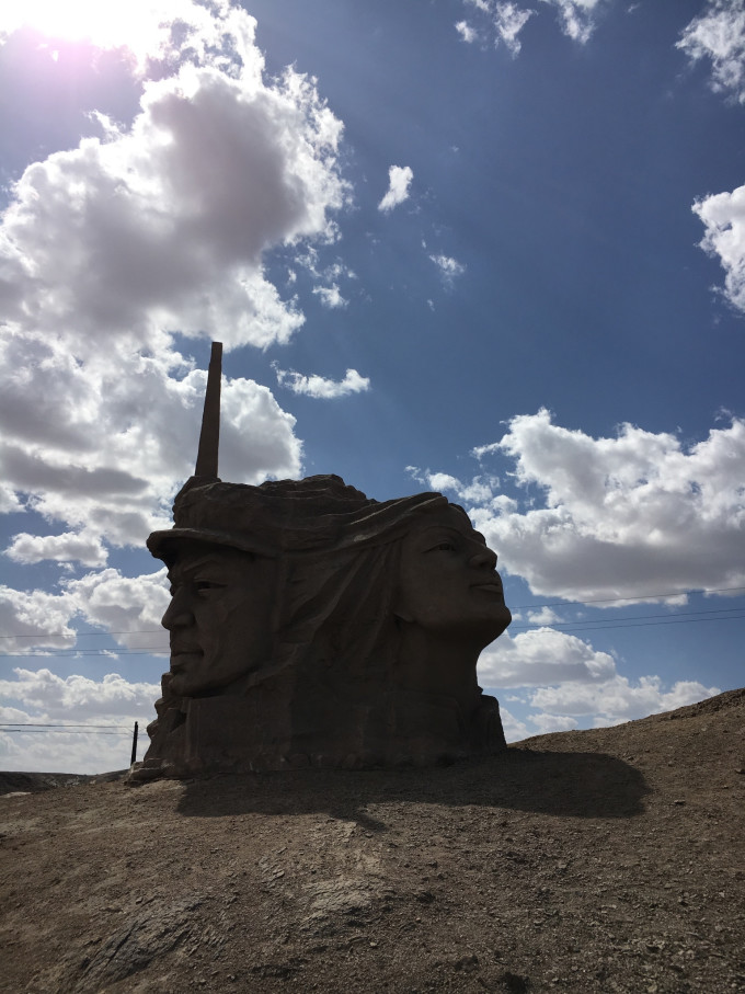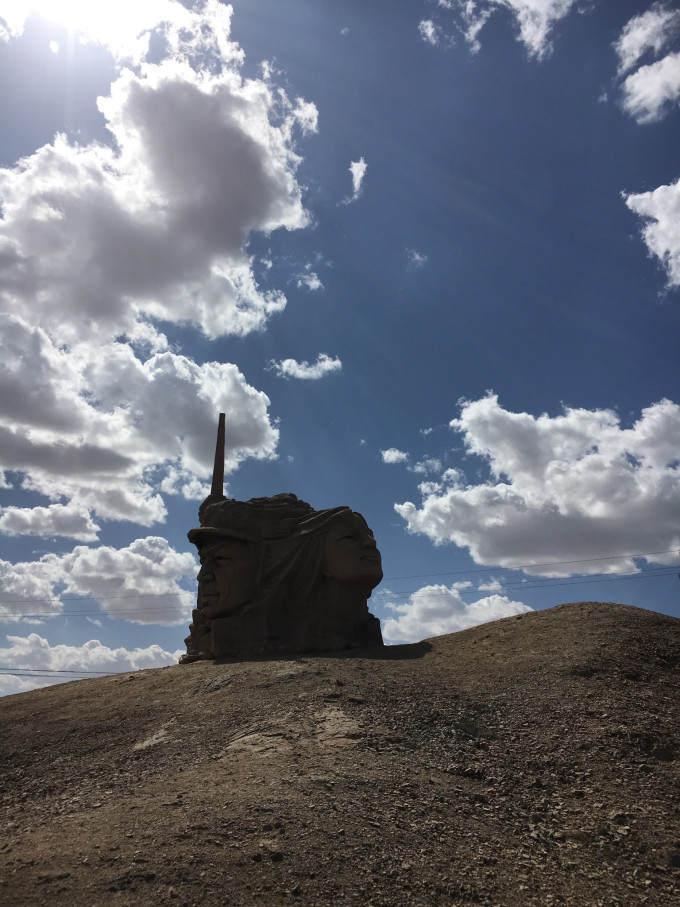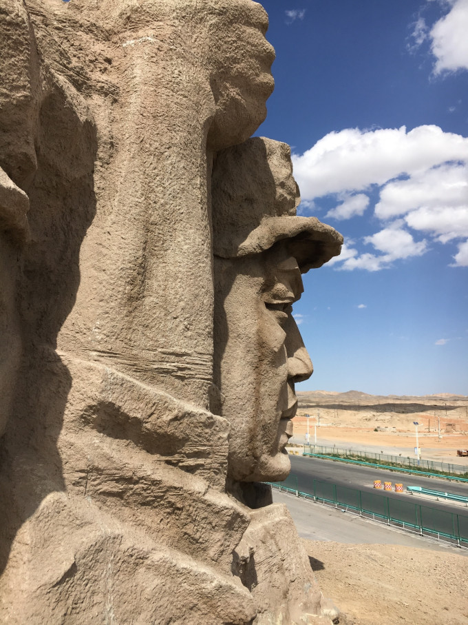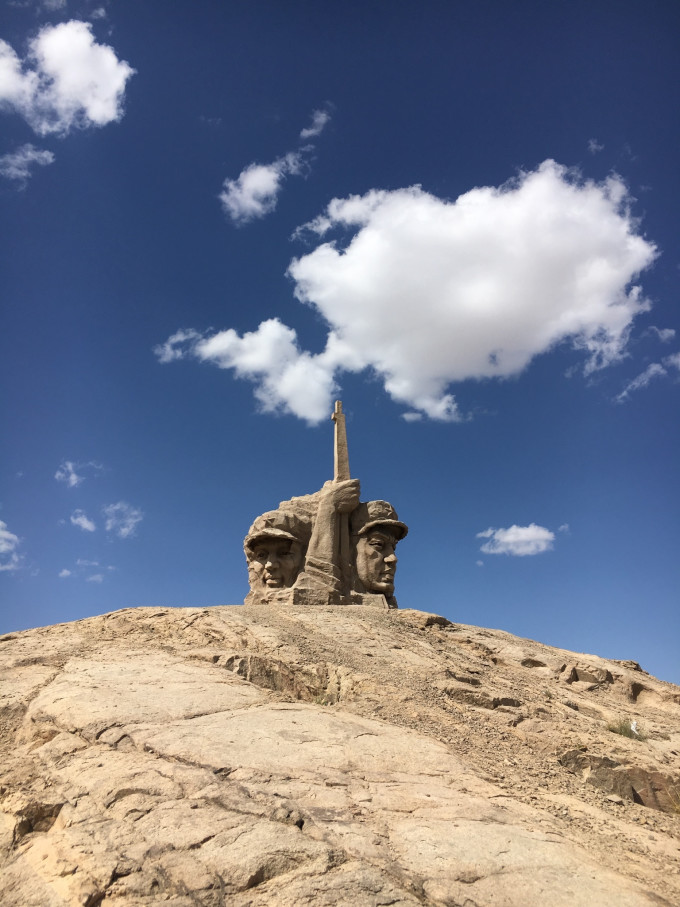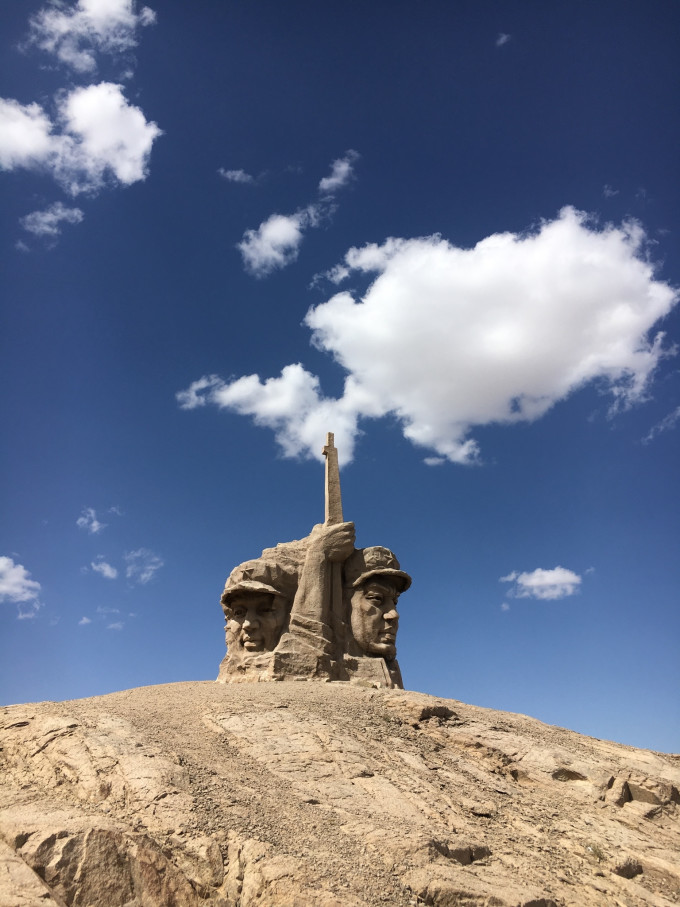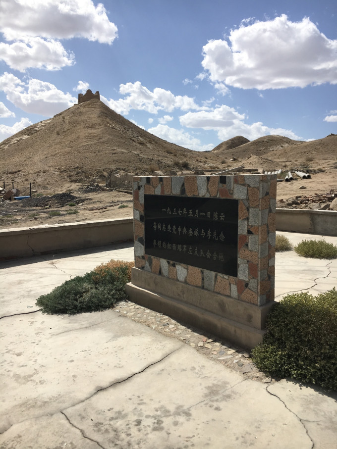 反方向循着那群人的路线,走下山头。他们告诉我那里不但有个雕塑,还有陈云同志迎接西路军的纪念碑。