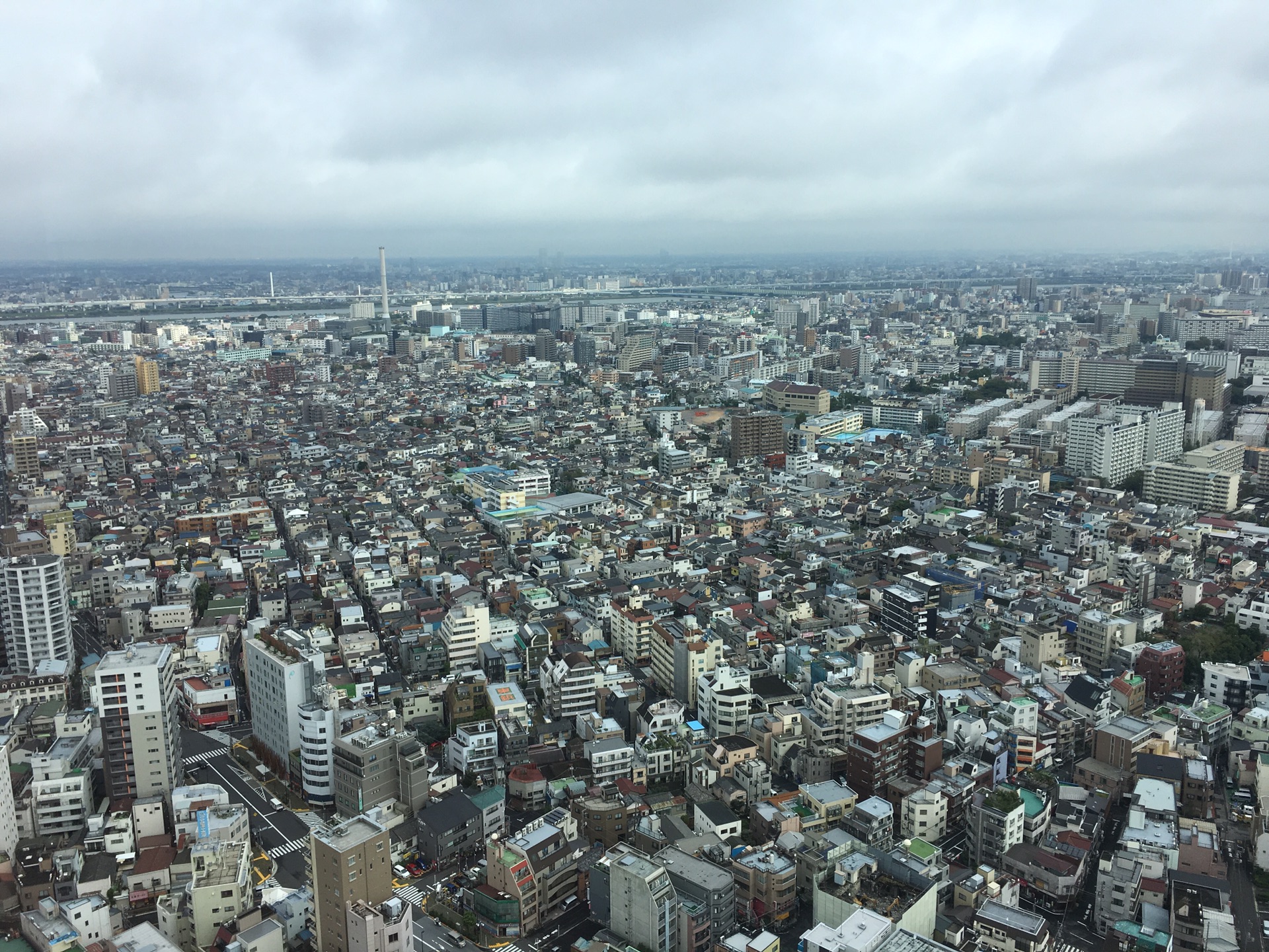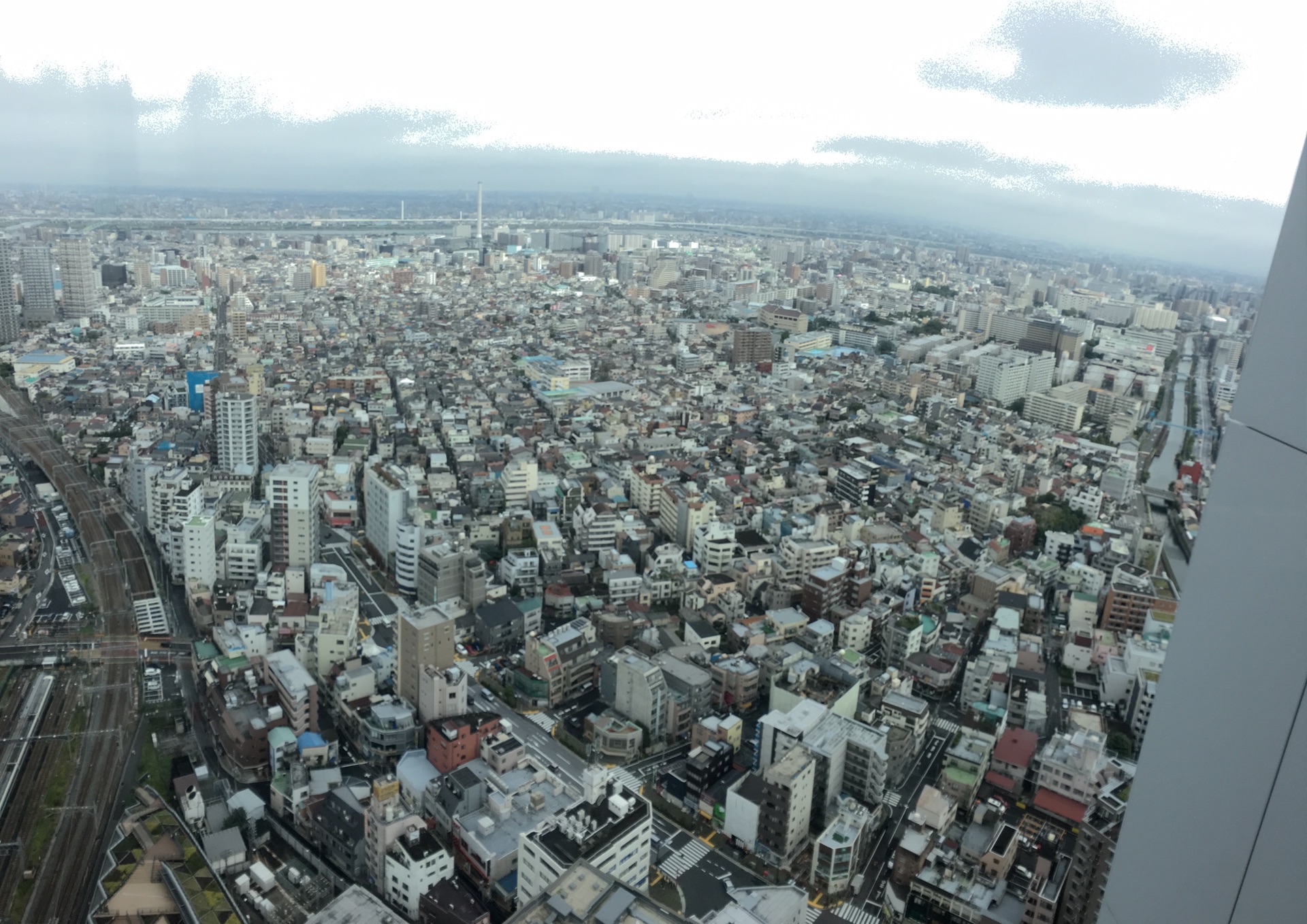 在晴空树下看了看,拍了拍,就准备去摩天楼铁板烧吃午饭,它位于晴空塔旁边的高层购物中心,一层就有直达三十层的电梯,并且是室外电梯,可以看到周围的建筑一点一点变小,还是挺有意思的。
