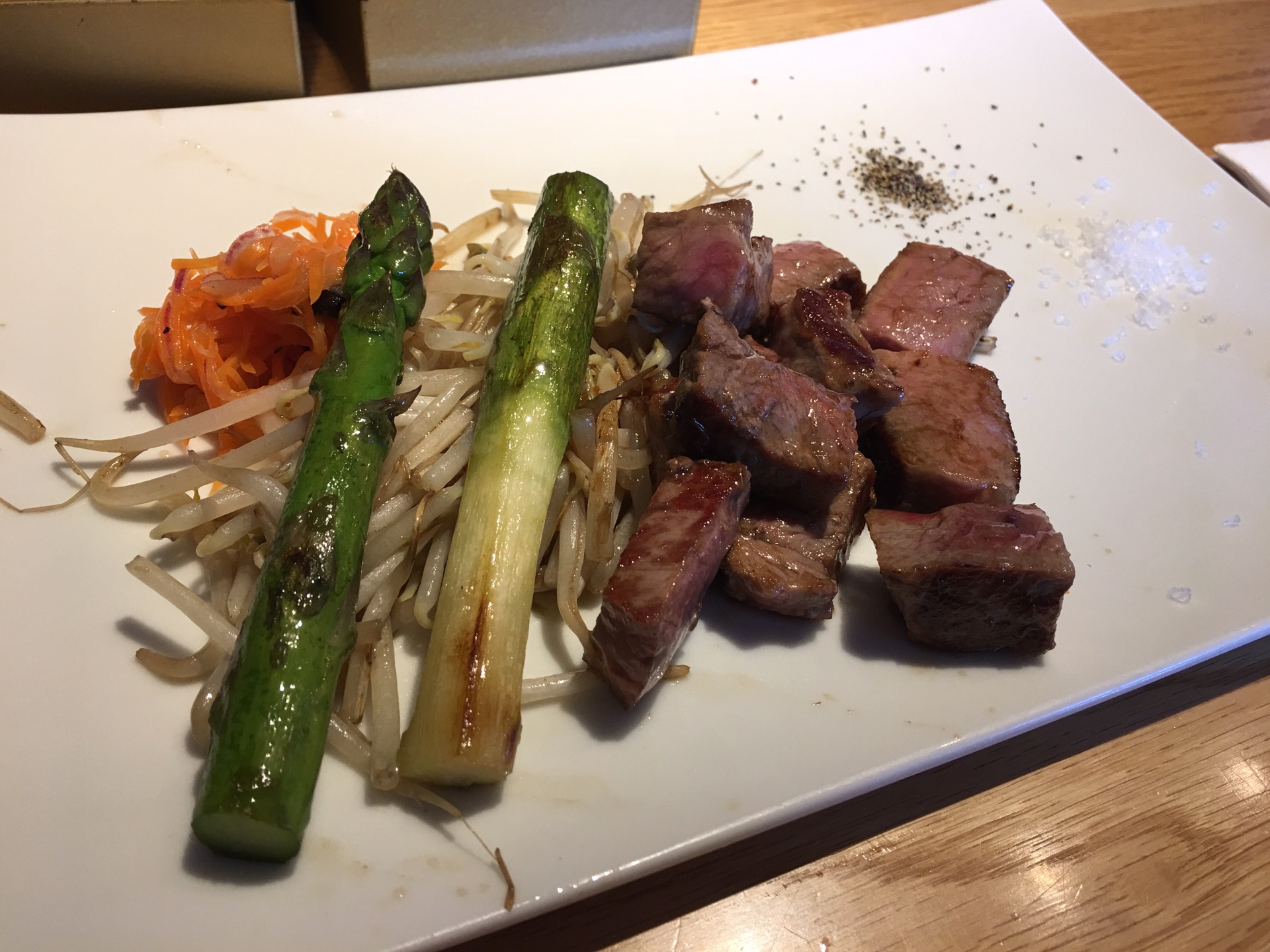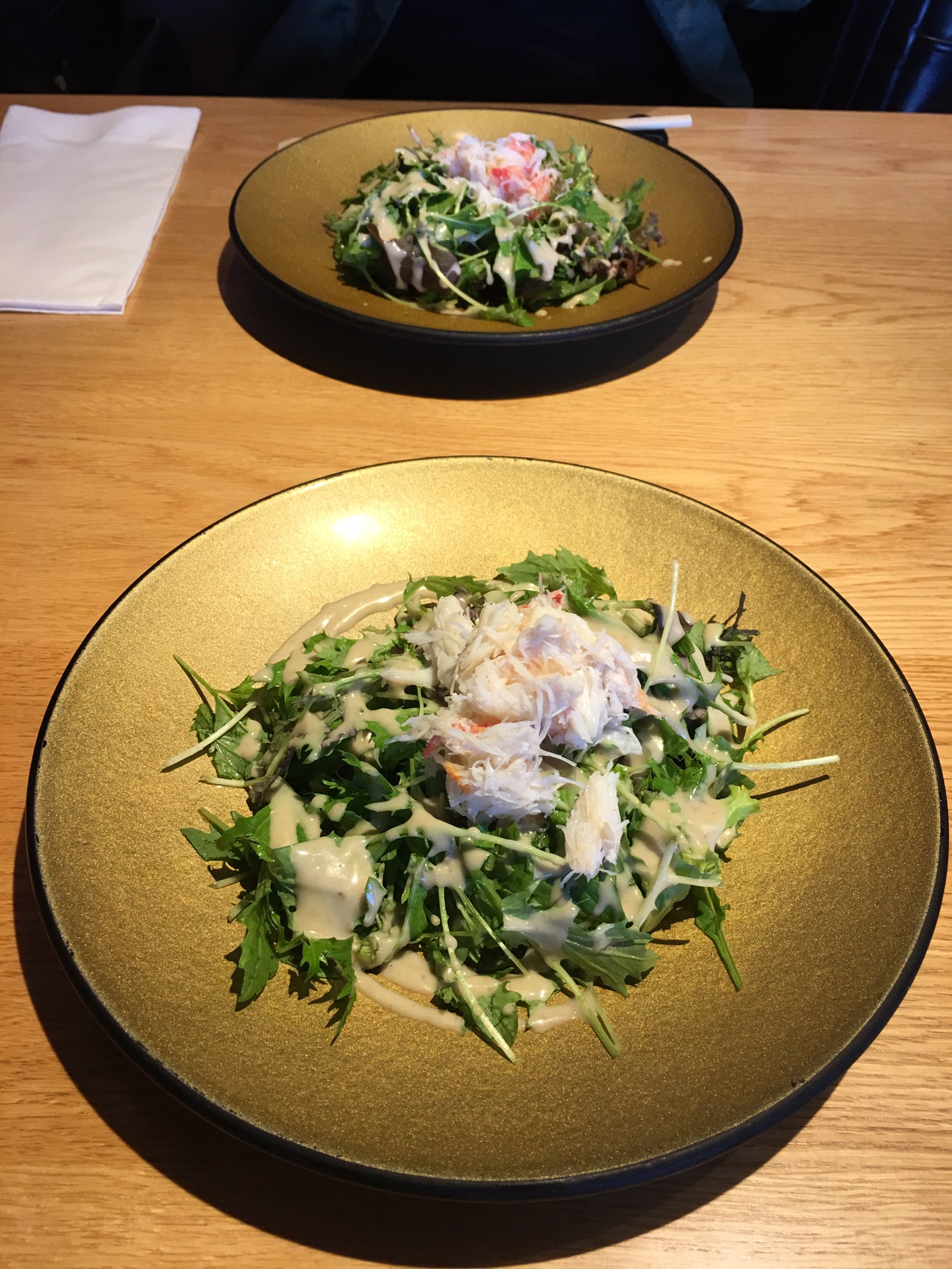 进铁板烧没有排队,我俩分别点了三千五与五千五的套餐,不得不说第一道蟹肉沙拉有点惊艳到我们了,之后的菜比较想吃的海胆可能因为时节换菜没有了,最后一道铁板牛肉也还不错。因为上午的牛杂,没有多大胃口的我们还是吃光了两份套餐,这也说明了量不算大。