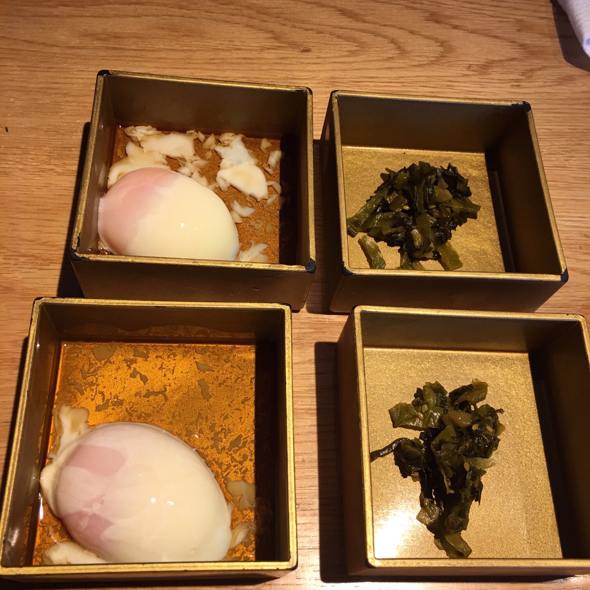 其中有些冒傻气的是:服务人员先上了两颗蛋和两小盘咸菜,我们以为这两个是一起直接吃的,就直接吃了,味道也还可以。可再过了十分钟后又送上了茶和米饭,这时我俩才反应过来两种东西是怎么吃……
