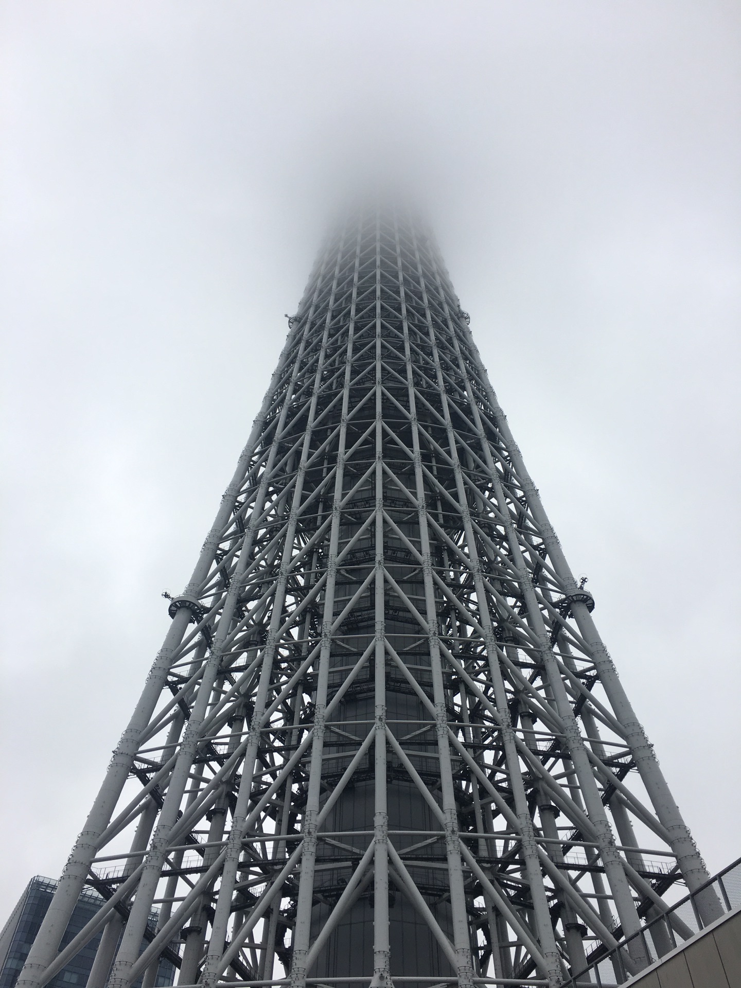 地铁出来走两步就能看到晴空塔,外面还飘着小雨,天空雾气蒙蒙,晴空塔却直冲云霄,塔尖好像被隐藏在穹隆之外。