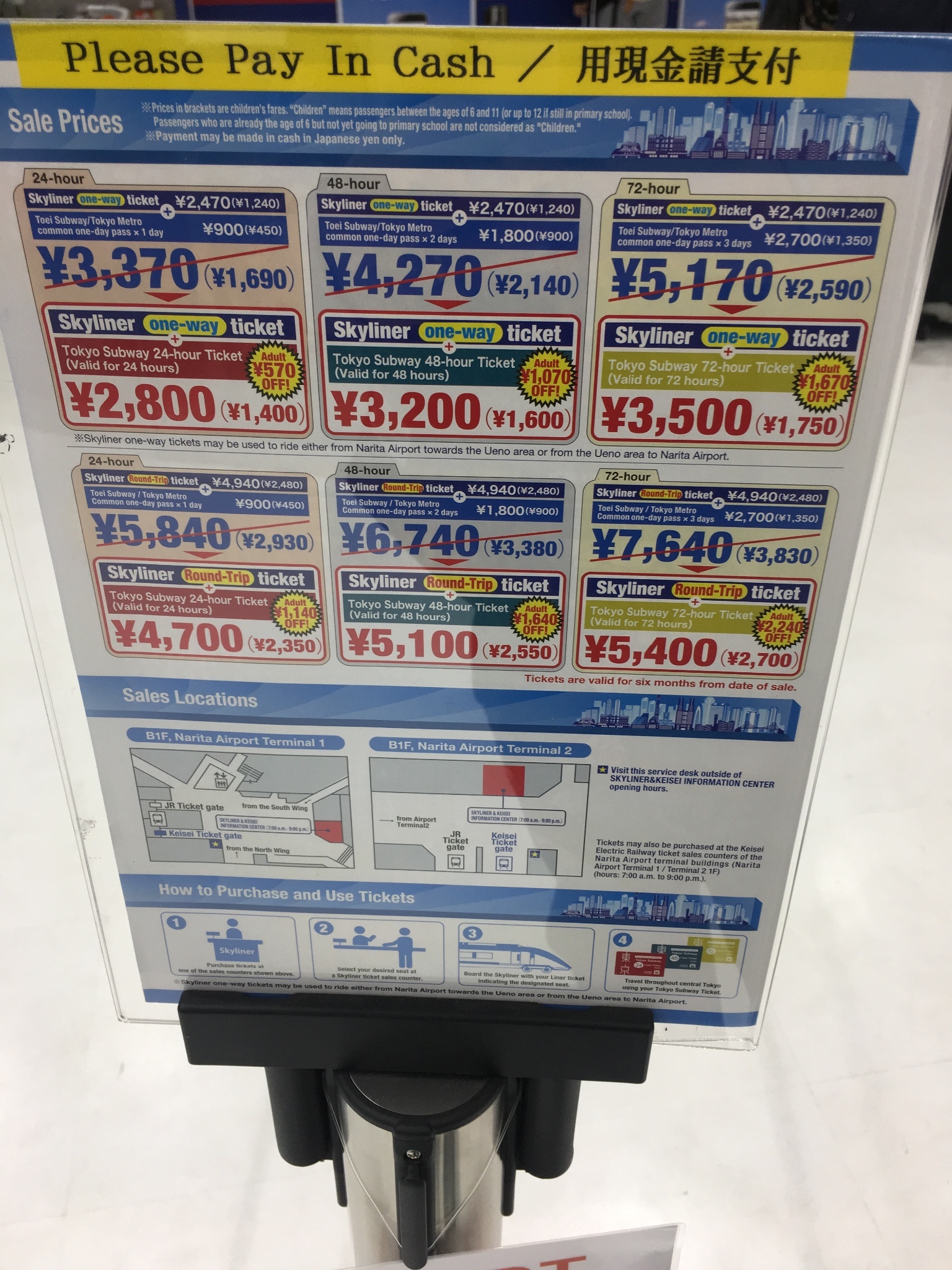 因为我做攻略做的并不好,我们在机场找skyliner的售票处找了半天,买了单程加一日券又走错车站,日本人的英语大部分我听不懂,好在那时的悦姐有了灵光,顺利坐上去上野的机场线。