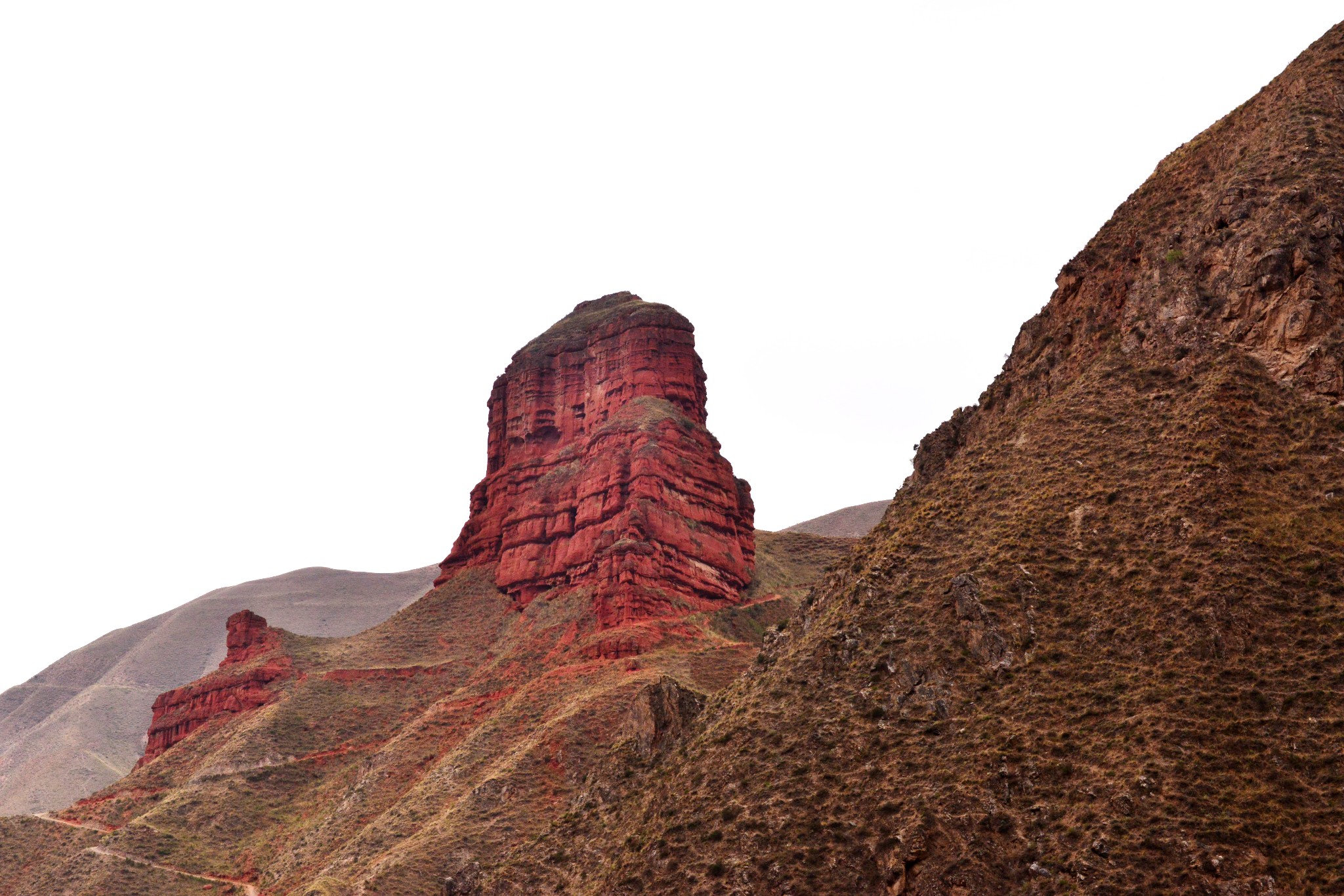 离开循化县城,S202往湟源,行驶在积石峡山谷,经化隆往千户,峡谷中道路两边有丹霞山体,颜色很红,想必是红色砂砾岩成分多。