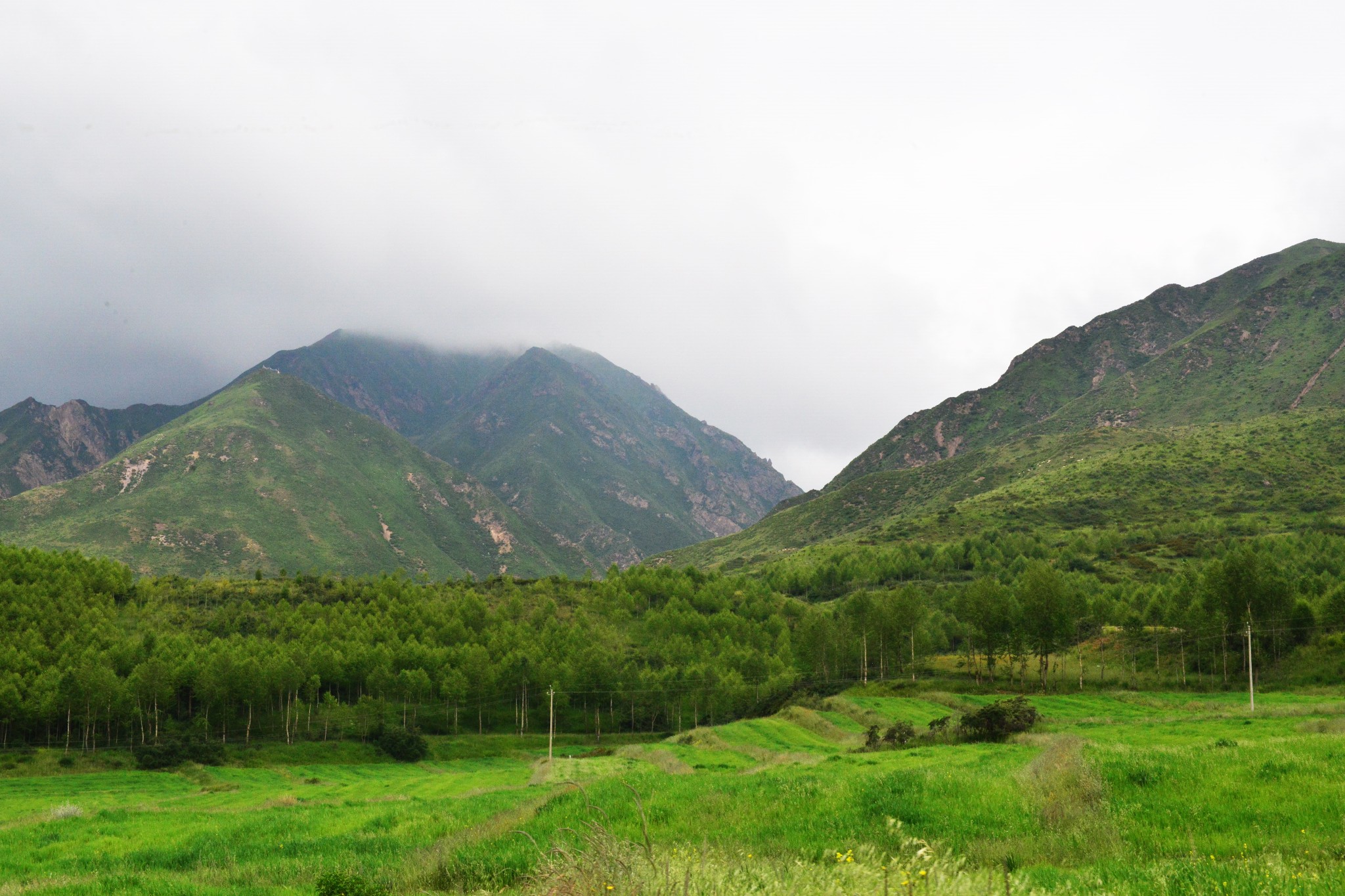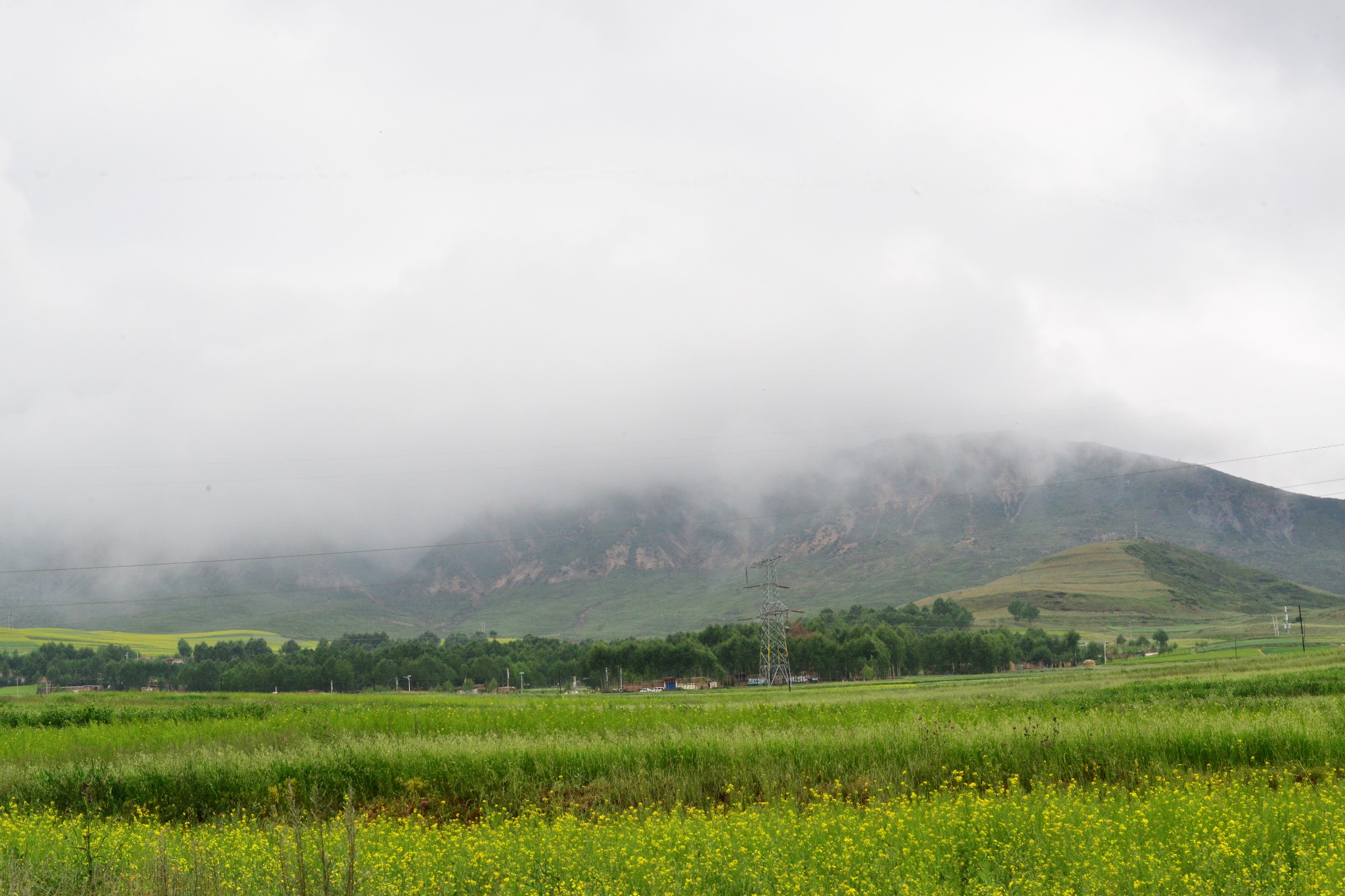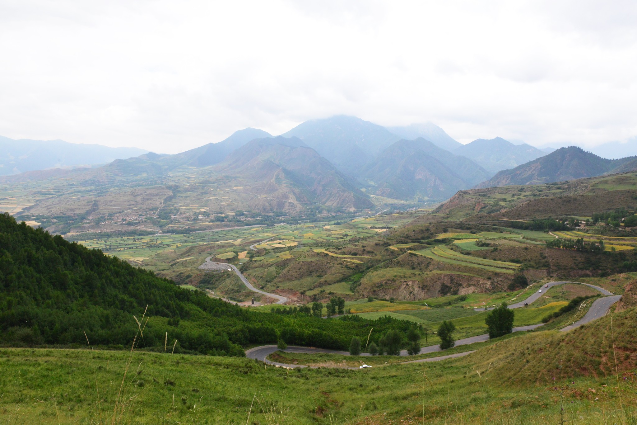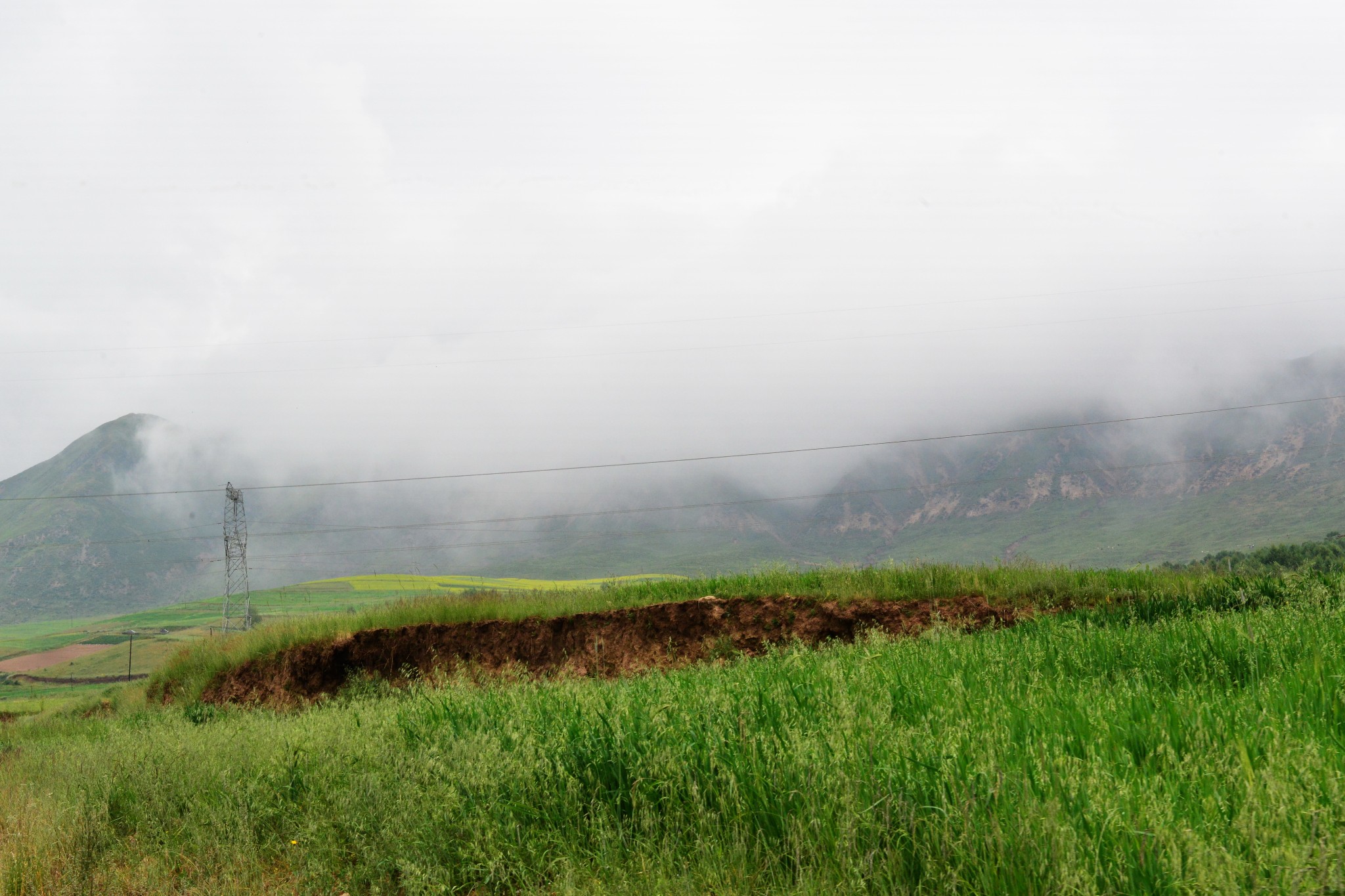 到达千户,S307往湟源,进入2600米的高山草甸、山间迷蒙大雾中。最后到达海拔3418米的千户垭口。