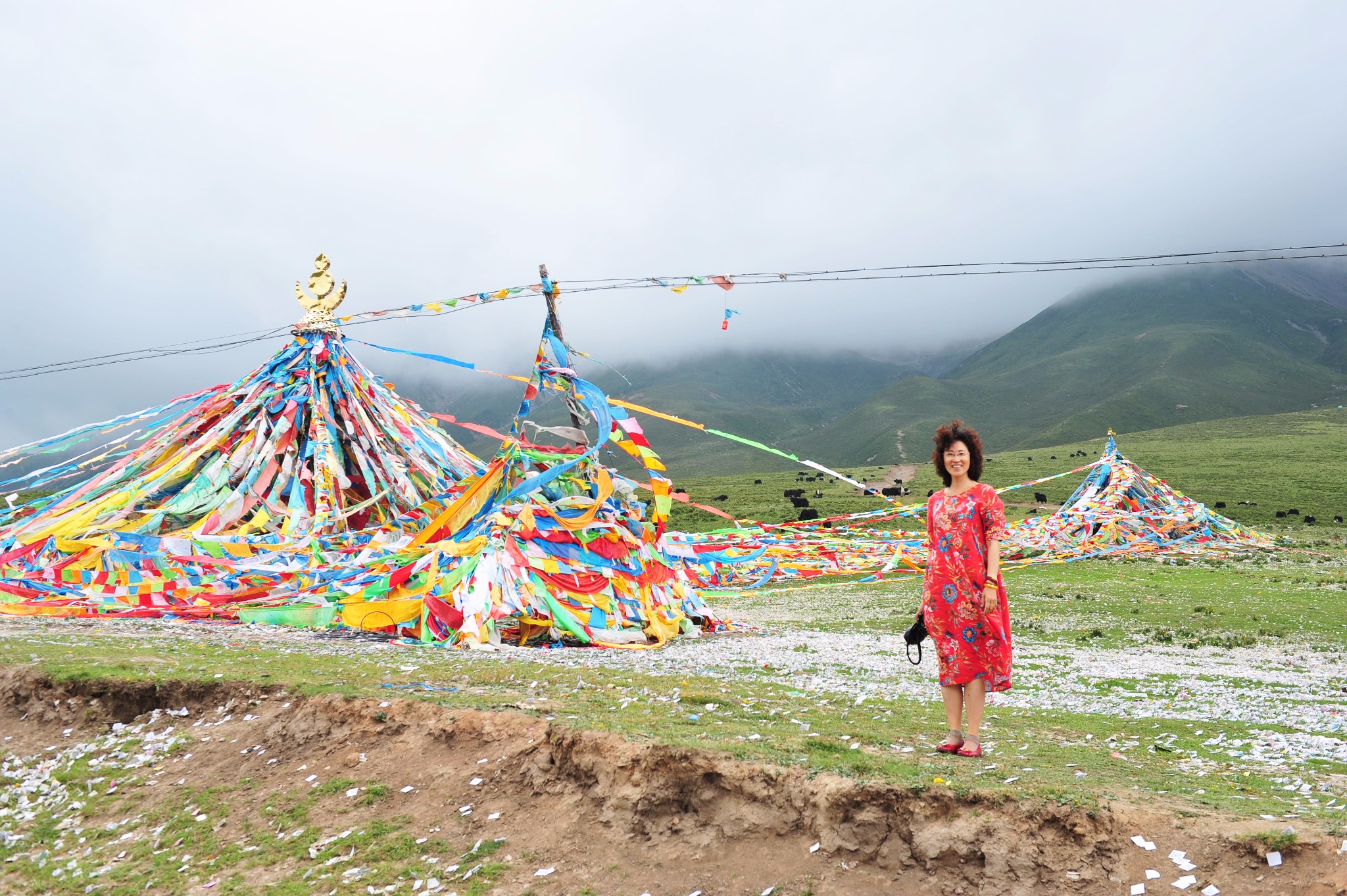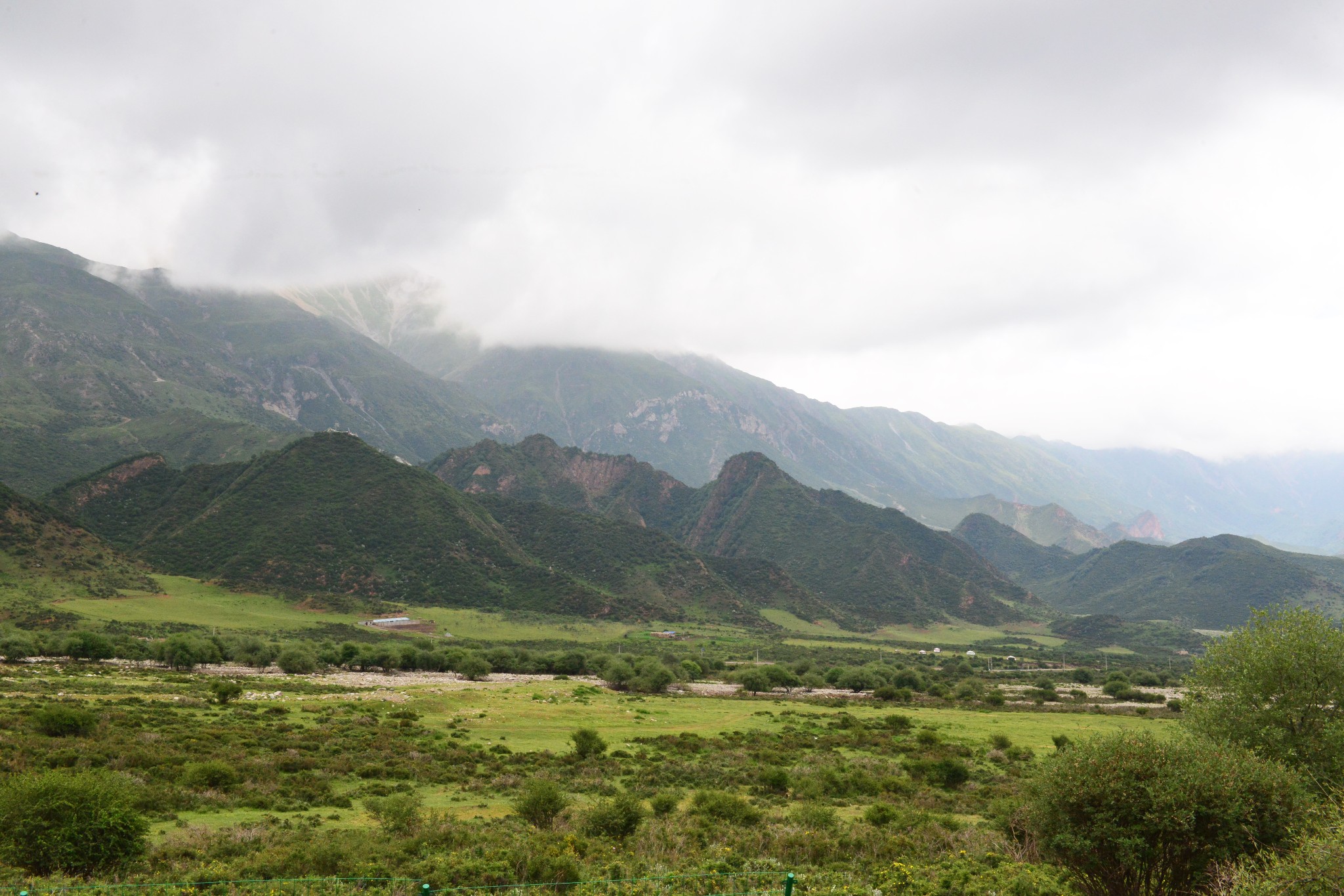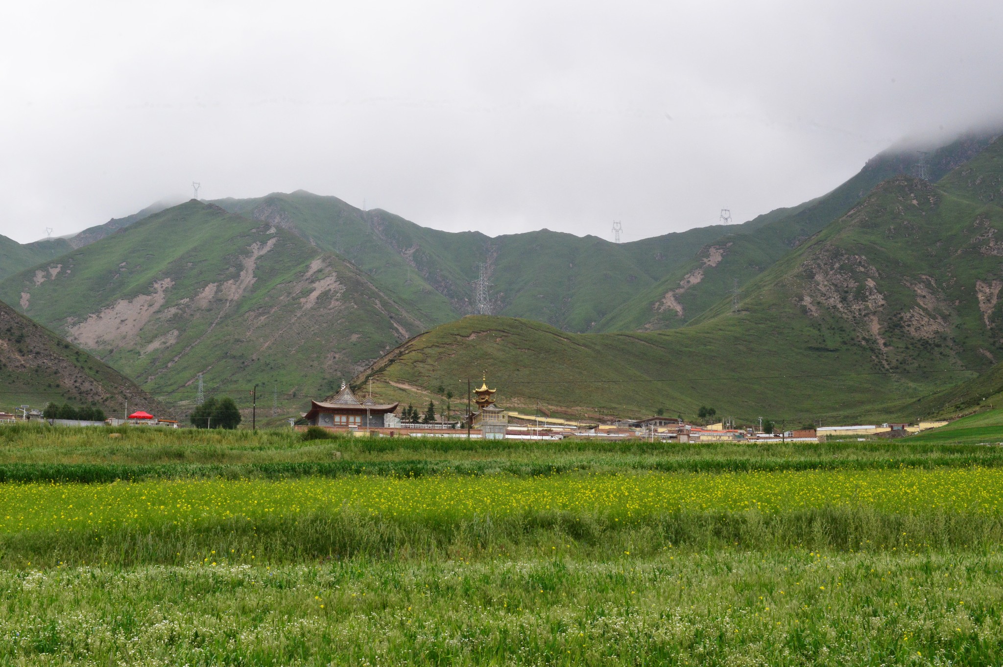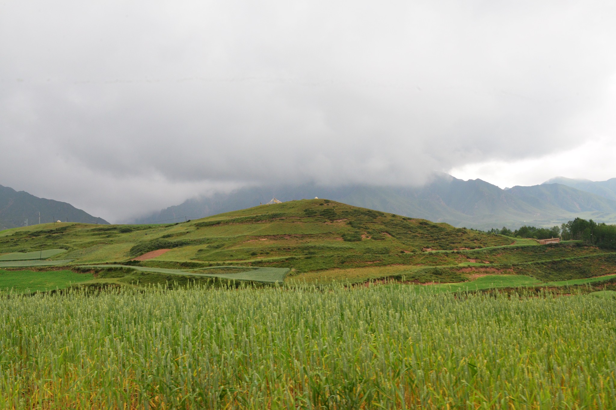 到达千户,S307往湟源,进入2600米的高山草甸、山间迷蒙大雾中。最后到达海拔3418米的千户垭口。