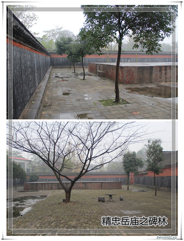 转过别院,是特意设立的碑林,内容大多是怀念岳飞表达景仰的,也有书法、功德之类。美中不足的是,院子显得空旷,砖砌地面,青苔、泥土有些泥泞。估计有了经费可以增添一二建筑。