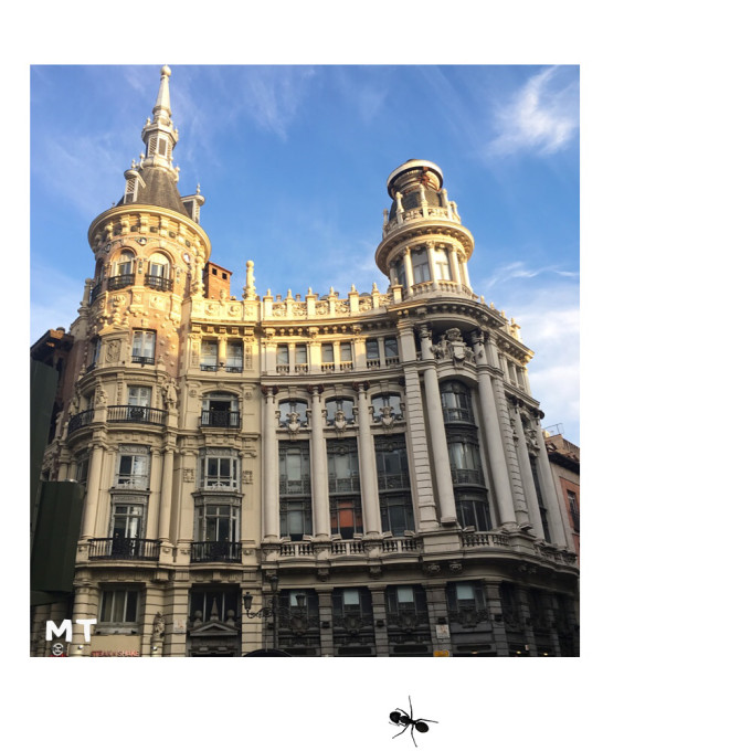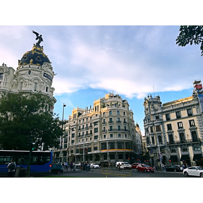 马德里的街景真的很漂亮大气,以下这个位置据说是拍照的绝佳位置(头上顶个小天使的建筑还是比较好认的),如果您有一个广角、一个三角架不妨来这个三角地拍摄夜景。。。原谅手机的渣,照不出原本的恢弘大气。。。