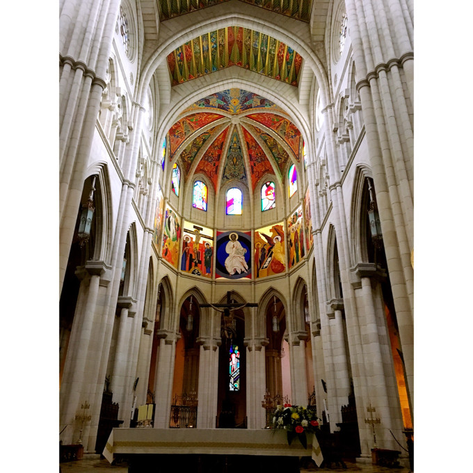 据说阿尔穆德娜是皇家教堂,西班牙皇室举行婚礼会在这里?不管怎么说,教堂里面光线明亮色彩温暖,让人感到既神圣又愉快。