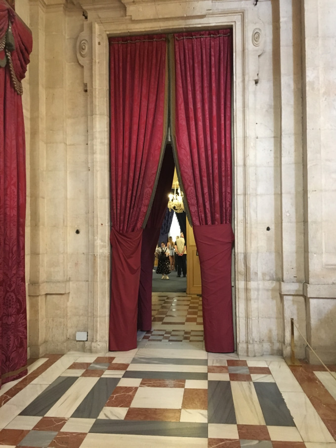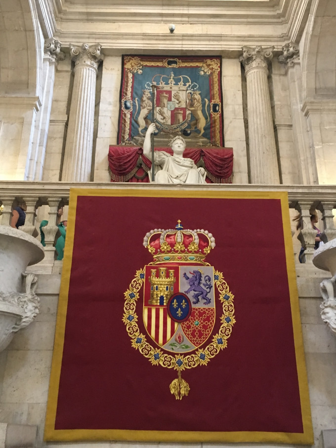 马德里的第一站就是马德里王宫,票已在飞猪阿良家订好,他家订票比较靠谱,代购费也不贵,而且有的票比官网还便宜,同时还有详细的各个景点营业时间(西班牙景点4-9月和10-3月开门时间不同,有的甚至每个月时间都不同,有的会因为翻修关门,所以提前订票还是有保障的)。由于飞机到达时间,我们订的是16:00-18:00的票(18:00闭馆),需要存包,存包时需要1欧元硬币,等取包时,1欧元硬币自动返还。王宫兵器馆关门较早,17:30关门,因此来到之后先参观兵器管。此处还有一个小插曲,我们16:00到达王宫时,语音导览器据说都没有电了,需要等30分钟,但事实上30分钟以后前台就要下班了,所以我们无法租到语音导览,只能毫无目的的在里面瞎看,所幸有纸质攻略,否则真的是一头雾水,所以提醒大家去景点还是尽量要早,因为真的不知道会遇到什么事情!还有所谓的几点到几点免费参观基本不要想了,很多都只是对欧洲公民开放,而且还需要排大队,对于时间就是金钱的自助游来说,宁愿多花一点钱早一点进去参观,也不要把时间花在排队上!另,皇宫内部大部分区域不让拍照,凑合放几张大家看看,(吃货觉得)饭厅最漂亮。