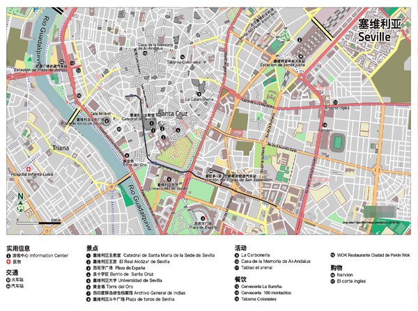 个人感觉最有用的是马德里和巴塞罗那的地铁图及景点图,塞维利亚因为就那么大,交通基本靠走,所以地图稍显不是辣么重要。